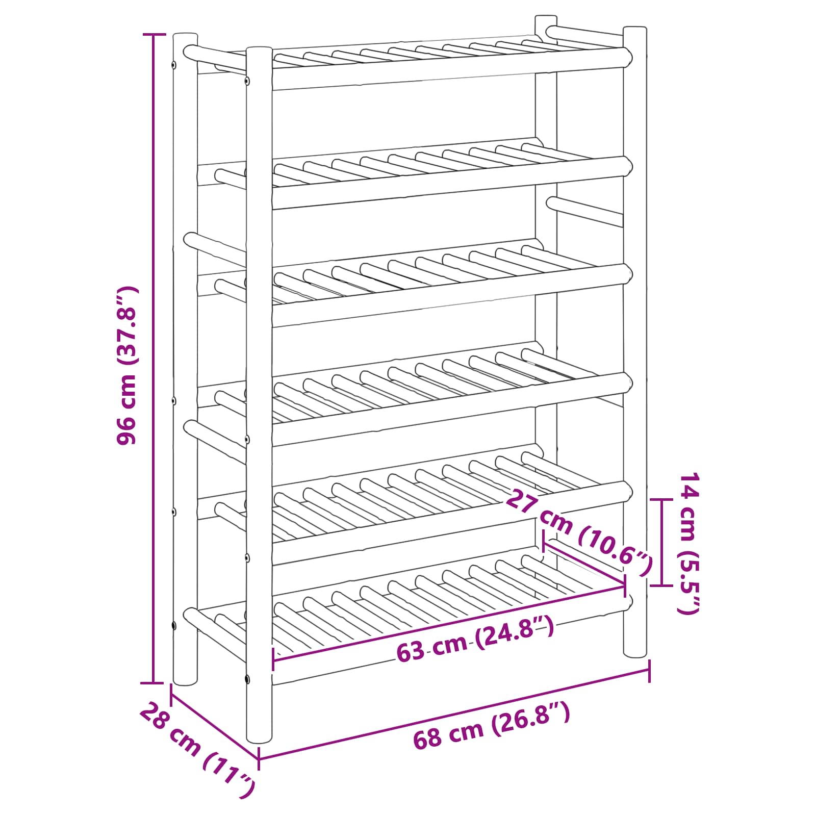 - Gesamtabmessungen: 68 x 28 x 96 cm (L x B x H)