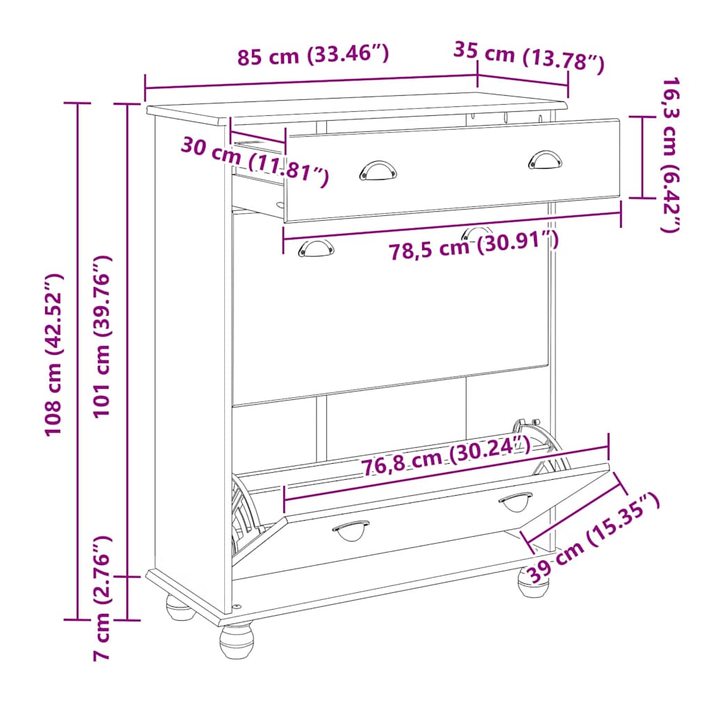 Dieses rechteckige Schuhregal aus massivem Kiefernholz ist eine tolle Ergänzung für dein Zuhause. Es verschönert deinen Raum und sorgt dafür, dass alles ordentlich bleibt. Die braune Oberfläche bringt Wärme und passt sowohl zu modernen als auch traditionellen Stilen. Perfekt, um Schuhe zu lagern und deine Lieblingsschuhe zur Schau zu stellen. Elegante braune Oberfläche: Dieses Schuhregal ist in einem warmen Braunton lackiert, passt gut zu vorhandenen Möbeln und bringt einen Hauch von Gemütlichkeit in deinen Raum. Robustes Rahmenmaterial: Aus solidem Kiefernholz gebaut, bietet es Stabilität und hält den täglichen Anforderungen stand. Viel Stauraum: Mit drei geräumigen Schubladen bietet das Regal genug Platz für verschiedene Schuharten. Einfache Zugänglichkeit: Jeder Schublade hat einen praktischen Cup-Griff für einen schnellen Zugriff auf deine Schuhe. Schlanke Abmessungen: Mit einer Länge von 80 cm und einer Breite von 40 cm ist es perfekt für Flure und Schlafzimmer und nimmt nicht zu viel Platz ein.