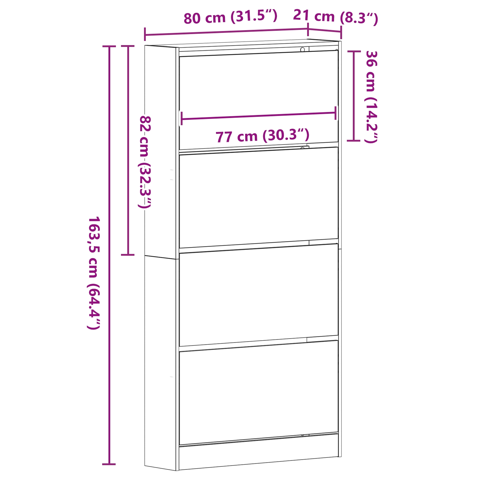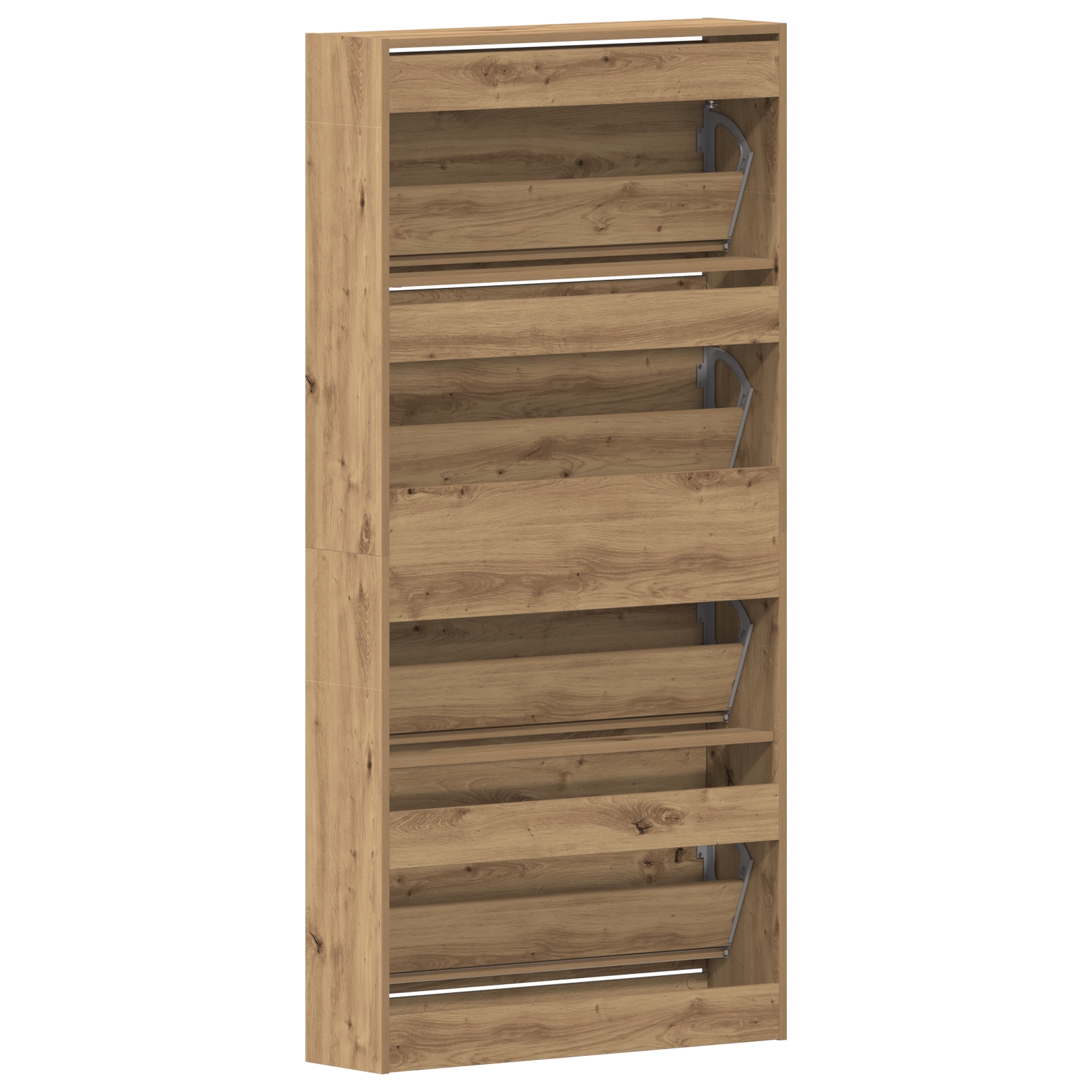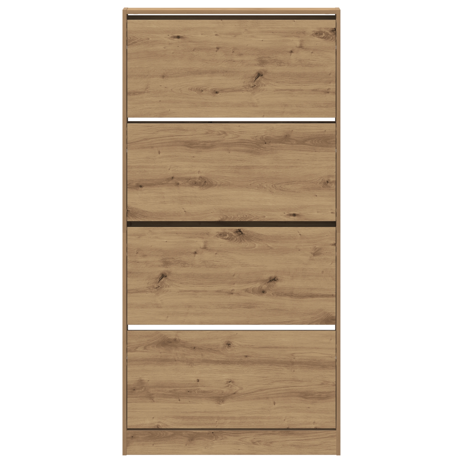 Der Schuhaufbewahrungsschrank mit 4 Klappschubladen verbindet Stil und Funktion. Er macht deinen Flur oder Wohnbereich schlauer und bietet viel Stauraum. Die texturierte handwerkliche Eichenoberfläche gibt einen modernen Touch und sorgt dafür, dass deine Schuhe gut geordnet sind. So hast du immer schnellen Zugriff, und dein Raum bleibt ordentlich. Geräumiger Innenraum mit vier klappbaren Schubladen für Schuhe, die sie griffbereit und ordentlich halten. Elegante texturierte Eichenoberfläche wertet deine Einrichtung auf und fügt sich nahtlos in moderne Stile ein. Der Schrank ist aus langlebigem Holzwerkstoff gefertigt und hält dem täglichen Gebrauch problemlos stand. Kompakte Größe ist perfekt für kleine Räume, passt gut in jeden Flur, Eingangsbereich oder Schrank. Bietet praktische klappbare Schubladen, die eine geniale Möglichkeit zur Aufbewahrung von Schuhen bieten und diese schützen.