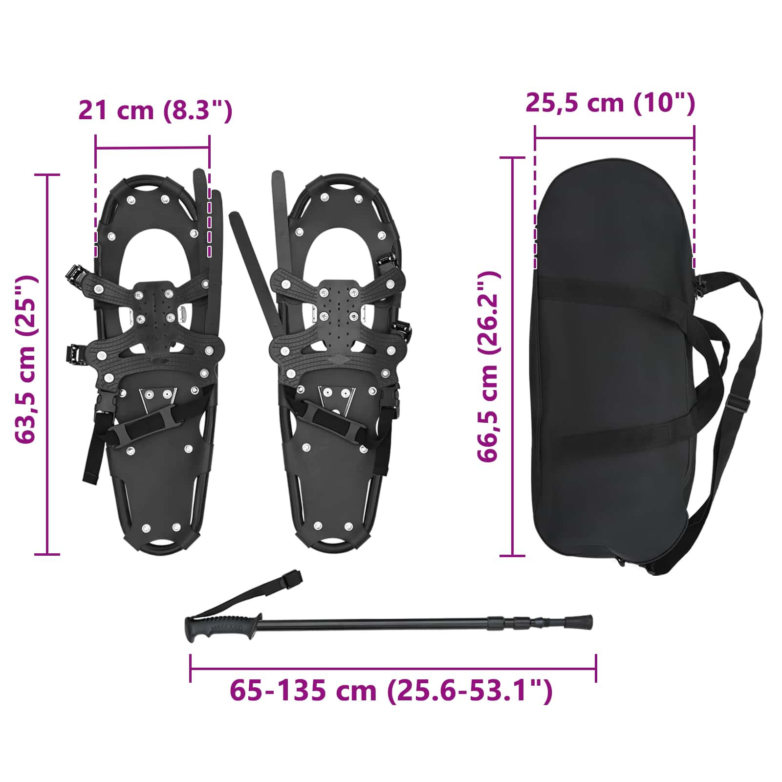 Dieses 3 IN 1 moderne Schneeschuhset mit Wanderstöcken ist perfekt für alle, die den Winter und Abenteuer im Schnee lieben. Es steht für einfache Handhabung und Funktionalität und verspricht ein leichtes Gleiten über schneebedeckte Wege, ideal für Outdoor-Fans. Durch sein modernes Design spricht es sowohl Anfänger als auch erfahrene Schneeschuhwanderer an, die nach Freiheit und Aufregung suchen. Aluminiumrahmen & Polyethylenboden: Robust und langlebig, hält der Aluminiumrahmen auch rauen Bedingungen stand. Die Kältebeständigkeit sorgt dafür, dass du sicher durch den Schnee kommst. Komplettset: Enthält ein Paar Schneeschuhe, zwei verstellbare Wanderstöcke und eine Tragetasche. Ideal für jeden, der alles für sein Schneewander-Abenteuer in einem Paket sucht. Alles ist leicht zu transportieren und zu lagern, damit du immer für Abenteuer gewappnet bist. Kältebeständige Eigenschaften: Der HDPE-Boden ist perfekt für kalte Umgebungen, und der verstellbare Fersenriemen sorgt dafür, dass deine Füße gut sitzen. So bleibst du auf jedem Terrain sicher und kontrolliert. Vielseitige Nutzung: Ob beim Wandern auf den Bergen oder in versteckten Wäldern, die Schneeschuhe passen von Größe 38 bis 48 und das Ratschen-System bietet eine flexible Anpassung für verschiedene Nutzer. Einfache Pflege: Bewahre die Ausrüstung an einem kühlen, trockenen Ort auf und wische sie mit einem trockenen Tuch ab, um sie in Top-Zustand zu halten. Vermeide den Gebrauch auf Asphalt, um den Boden zu schonen, und überprüfe sie vor jeder Wintersaison.