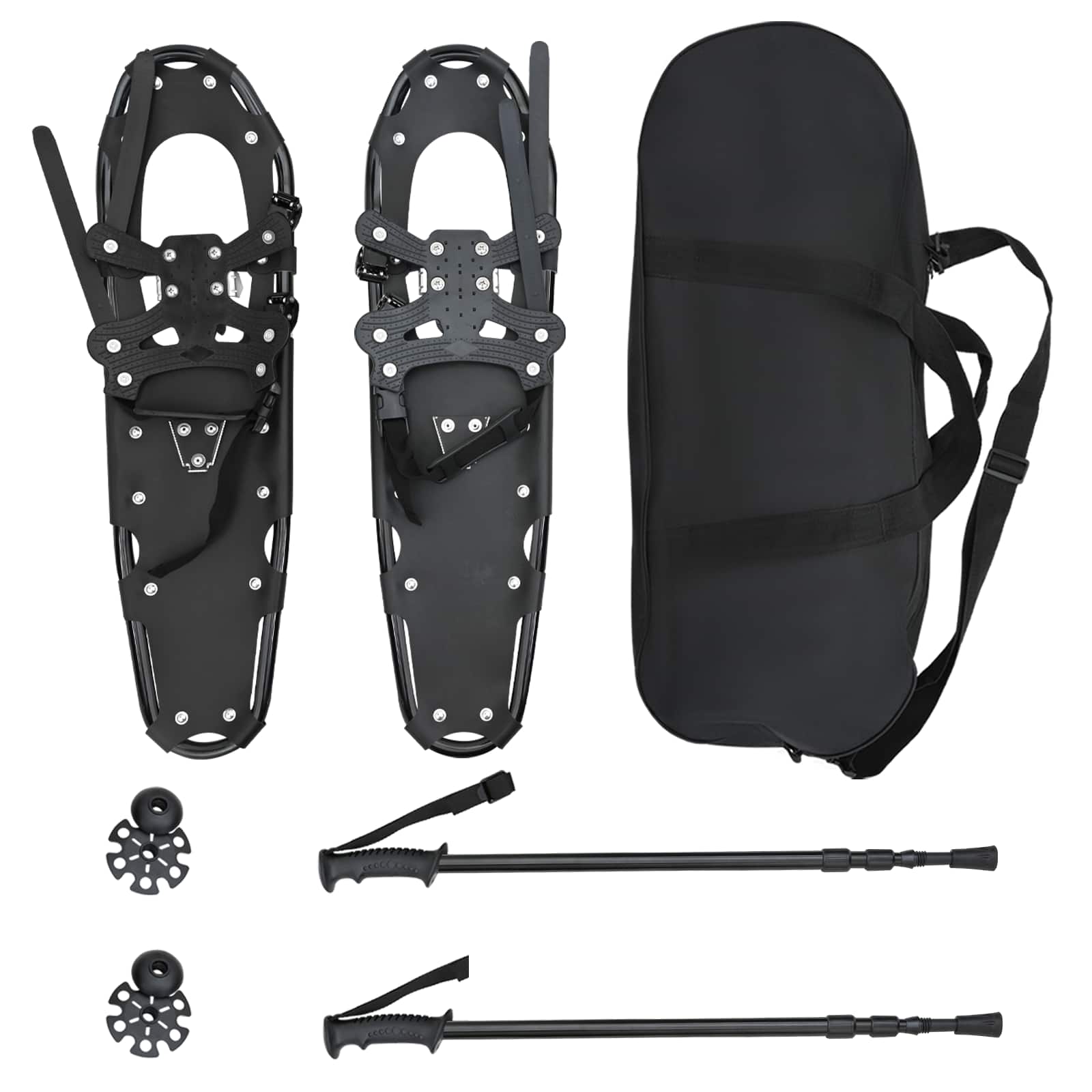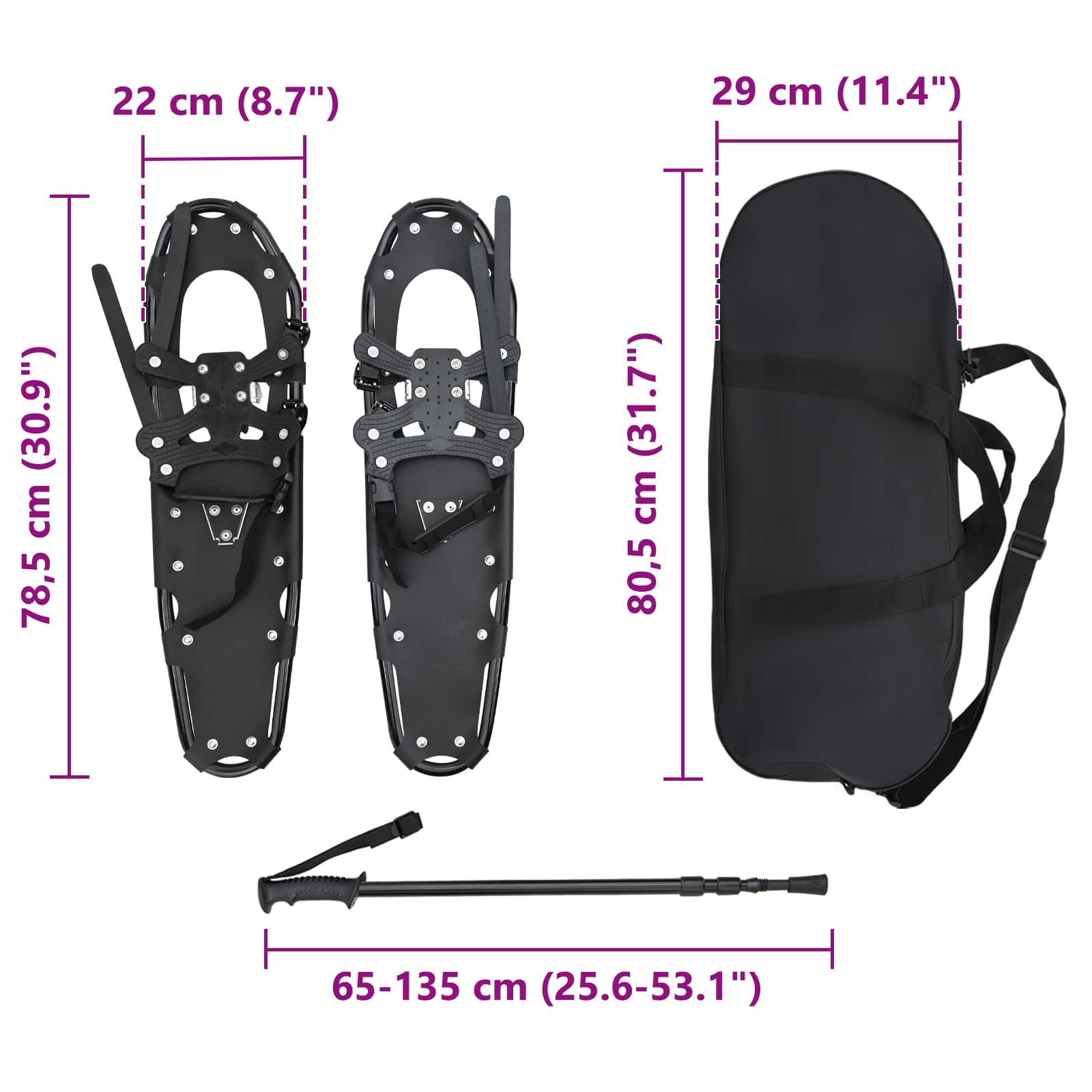 Dieses 3 IN 1 moderne Schneeschuhset mit Wanderstöcken ist perfekt für alle, die den Winter und Abenteuer im Schnee lieben. Es steht für einfache Handhabung und Funktionalität und verspricht ein leichtes Gleiten über schneebedeckte Wege, ideal für Outdoor-Fans. Durch sein modernes Design spricht es sowohl Anfänger als auch erfahrene Schneeschuhwanderer an, die nach Freiheit und Aufregung suchen. Aluminiumrahmen & Polyethylenboden: Robust und langlebig, hält der Aluminiumrahmen auch rauen Bedingungen stand. Die Kältebeständigkeit sorgt dafür, dass du sicher durch den Schnee kommst. Komplettset: Enthält ein Paar Schneeschuhe, zwei verstellbare Wanderstöcke und eine Tragetasche. Ideal für jeden, der alles für sein Schneewander-Abenteuer in einem Paket sucht. Alles ist leicht zu transportieren und zu lagern, damit du immer für Abenteuer gewappnet bist. Kältebeständige Eigenschaften: Der HDPE-Boden ist perfekt für kalte Umgebungen, und der verstellbare Fersenriemen sorgt dafür, dass deine Füße gut sitzen. So bleibst du auf jedem Terrain sicher und kontrolliert. Vielseitige Nutzung: Ob beim Wandern auf den Bergen oder in versteckten Wäldern, die Schneeschuhe passen von Größe 38 bis 48 und das Ratschen-System bietet eine flexible Anpassung für verschiedene Nutzer. Einfache Pflege: Bewahre die Ausrüstung an einem kühlen, trockenen Ort auf und wische sie mit einem trockenen Tuch ab, um sie in Top-Zustand zu halten. Vermeide den Gebrauch auf Asphalt, um den Boden zu schonen, und überprüfe sie vor jeder Wintersaison.