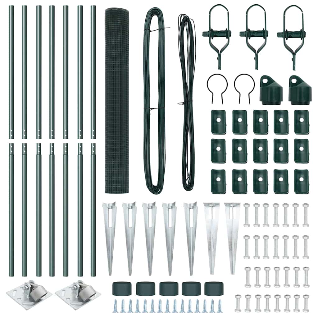 Schweißdrahtzaun mit 7 Spitzpfosten Grün 1,2x10 m Stahl