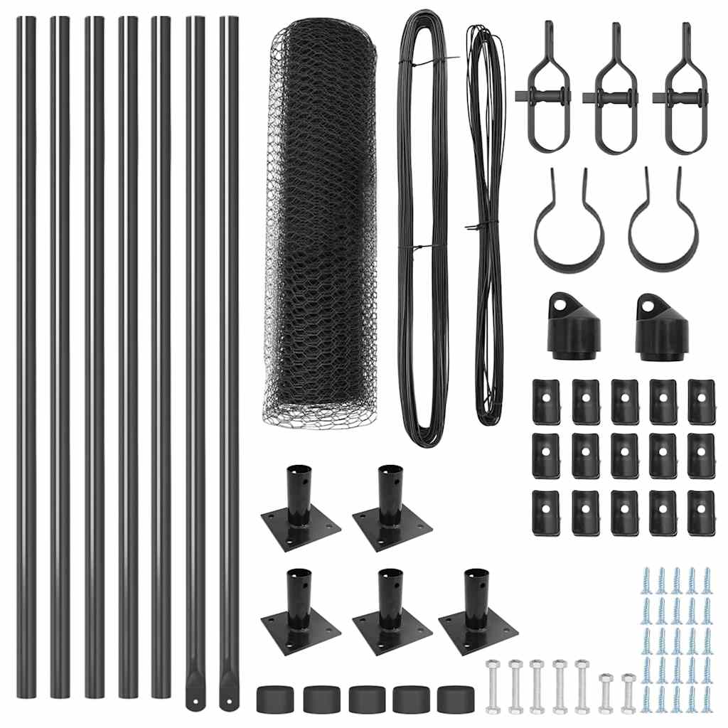 Das Outdoor Zaun Set ist stabil und bietet dir eine sichere und schicke Möglichkeit, Gärten und Außenbereiche abzugrenzen. Mit seinem modernen grauen Design und der starken Bauweise passt es in jeden Garten und sorgt dafür, dass alles sicher bleibt. Es ist die perfekte Wahl für verschiedene Outdoor-Anwendungen. Robustes Material: Der pulverbeschichtete Stahl macht dieses Zaun Set wetterfest, sodass du langen Schutz für deine Außenbereiche hast. Die glatte, wetterfeste Oberfläche sorgt für eine längere Lebensdauer. Ideal für Gärten: Die moderne graue Farbe ist ein echter Hingucker und bietet eine solide Barriere für Haustiere und Kinder, damit dein Garten gut aussieht. Einfache Montage: Es ist so gestaltet, dass die Montage schnell geht. Zwei Personen können es mit nur wenigen Werkzeugen zügig aufbauen. Flexible Größen: Mit 10 x 0.6 m passt es in verschiedene Räume und erfüllt deine Zaunbedürfnisse optimal. Vollständiges Set: Dieses Zaun Set enthält alles Wichtige, also fünf Zaunpfosten, eine Maschendrahtrolle und Betonfundamentbefestigungen, sodass du alles hast, was du für eine simple Einrichtung brauchst.