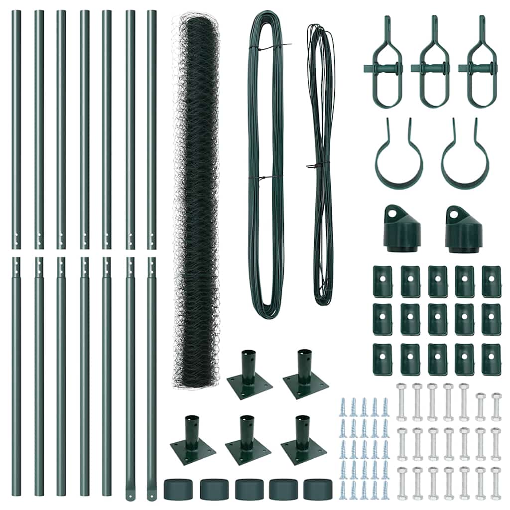 Das Außenzaun Set ist eine praktische Lösung, um deinen Garten und deine Außenbereiche zu sichern. Mit der kräftigen grünen Farbe und dem stabilen Design sieht er nicht nur gut aus, sondern sorgt auch für Sicherheit. Langlebiges Material: Der Zaun ist aus Metall und hat einen UV-beständigen Kunststoff-beschichteten Draht, was ihn langlebig macht und ihn zu einer zuverlässigen Barriere für deine Außenbereiche. Modernes Design: Die ansprechende grüne Oberfläche sorgt für eine freundliche Atmosphäre in deinem Garten und hält Haustiere und Kinder sicher. Einfache Montage: Das Set ist benutzerfreundlich und kann von ein paar Leuten mit Standardwerkzeugen wie Maßband, Schraubendreher und Schraubenschlüssel einfach zusammengebaut werden, was dein Zaunprojekt leicht macht. Umfangreiche Komponenten: Das Set hat alles, was du brauchst, einschließlich 8 stabiler Zaunpfosten, einer Rolle langlebigem Netz, Draht und Halterungen für eine komplette Installation. Vielseitige Nutzung: Perfekt für draußen, ist dieser Zaun ideal, um Gärten, Höfe oder jeden Außenbereich, der eine feste Grenze braucht, zu sichern.