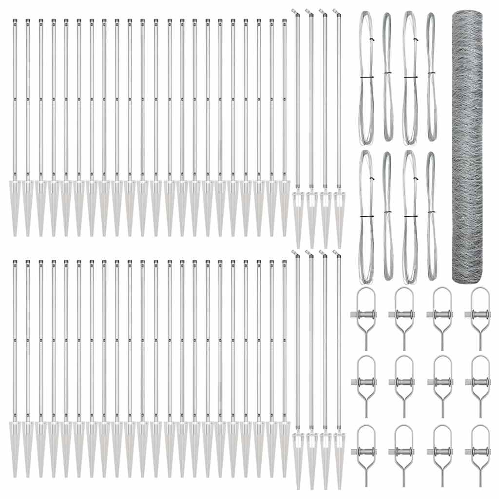 - Lieferumfang: 5 Zaunsektionen von 100 x 1,4 m (50 mm Maschenweite), Stahldrähte, Spike-Anker