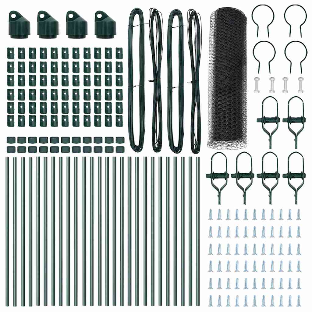 Dieses Außenzaun-Set ist eine zuverlässige Methode, um Gärten und Außenbereiche einzufrieden. Seine leuchtend grüne Farbe und robuste Bauweise passen perfekt in jeden Garten und sorgen für Langlebigkeit und Sicherheit, was es zu einer großartigen Wahl für verschiedene Außenanwendungen macht. Haltbares Material: Hergestellt aus UV-beständigem, beschichtetem Stahl, sorgt dieses Zaunset dafür, dass deine Außenbereiche geschützt bleiben. Die glatte, lackierte Oberfläche erhöht die Haltbarkeit. Ideal für Gärten: Die schöne grüne Farbe fügt sich bestens in die Natur ein, während sie eine solide Barriere für Haustiere und Kinder bietet und deinem Garten einen stilvollen Touch verleiht. Einfache Montage: Für deinen Komfort gestaltet: Dieses Set lässt sich schnell von nur zwei Personen mit grundlegenden Werkzeugen wie Bohrmaschine, Hammer und Maßband aufbauen. So kannst du den Zaun im Handumdrehen errichten. Alles, was du brauchst: Dieses Zaunset hat alles, was du dir wünschst—Zaunpfosten, Drahtgewebe-Rolle, Bindfäden und Clips—damit du dich auf die Installation konzentrieren kannst.
