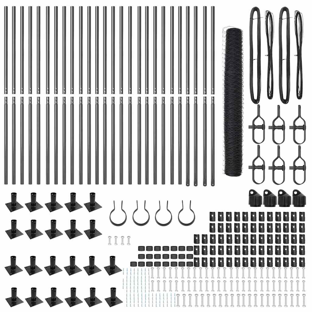- Lieferinhalt: Zaunpfosten, Schienen, Clips, Befestigungen, Masche