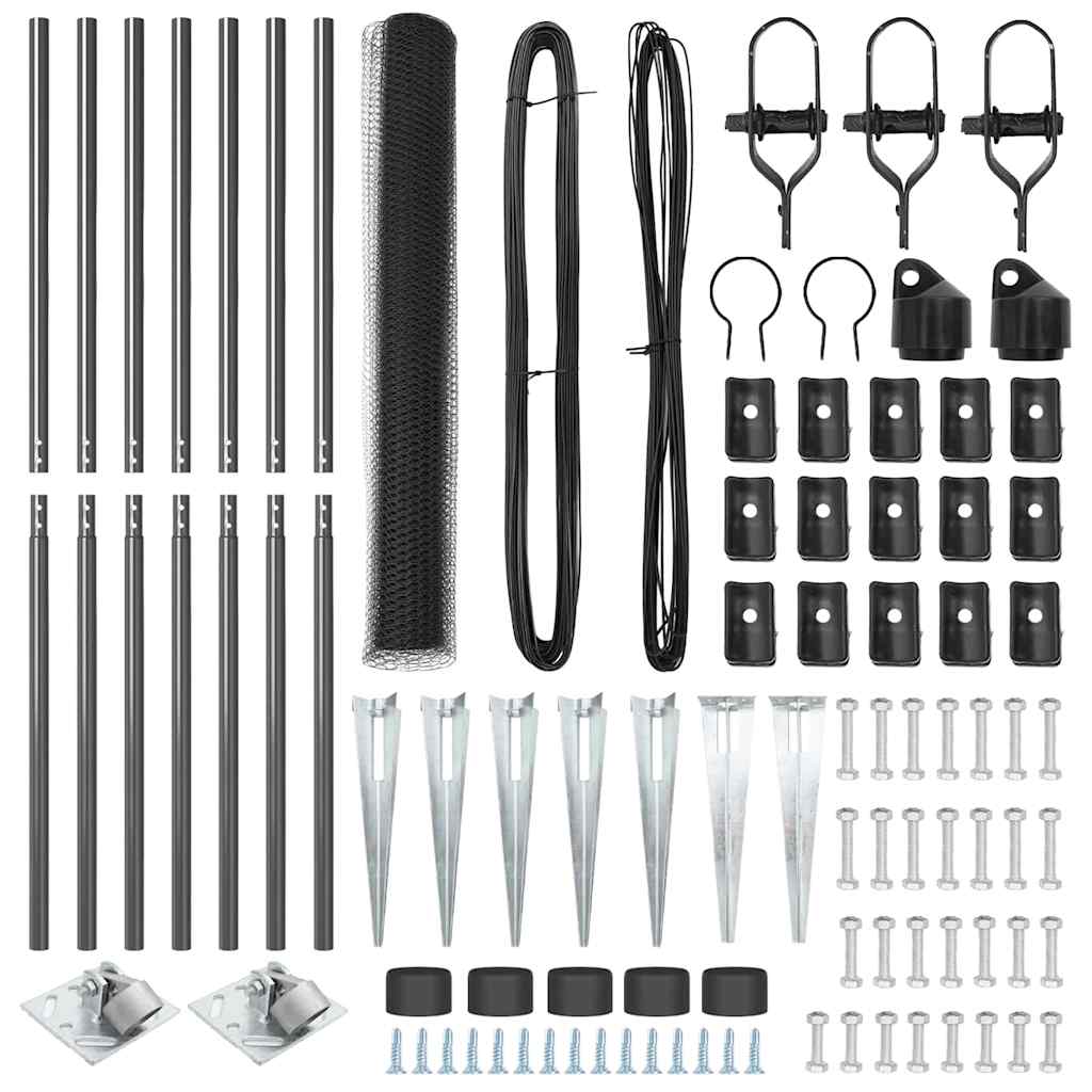 Dieses Zaunset für draußen gibt dir eine zuverlässige Möglichkeit, deinen Garten und Außenbereiche abzugrenzen. Mit seiner trendy grauen Farbe und robusten Bauweise sieht es in jedem Außenbereich top aus, während es gleichzeitig Haltbarkeit und Sicherheit gewährleistet – eine super Wahl für viele Anwendungen. Robuste Bauweise: Hergestellt aus strapazierfähigem pulverbeschichtetem Stahl und Kunststoff, bietet dieses Zaunset langanhaltenden Schutz für deine Außenbereiche. Perfekt für draußen: Die schicke graue Farbe ist stilvoll und praktisch und sorgt für eine stabile Barriere für Haustiere und Kinder und hebt deinen Garten hervor. Einfache Montage: Das Set lässt sich leicht von einer Person mit nur einem Hammer zusammenbauen, sodass du schnell deinen Außenbereich genießen kannst. Vielseitige Größen: Erhältlich in Größen wie 10 x 1,4 m (25 mm Netz), passt es zu verschiedenen Außenbereichen, von großen Gärten bis zu kleinen Abgrenzungen. Umfassendes Zaunset: Alles Wesentliche ist im Set enthalten, wie Zaunpfosten, Netzrolle, Anker und Draht, sodass du alles für eine erfolgreiche Installation hast.