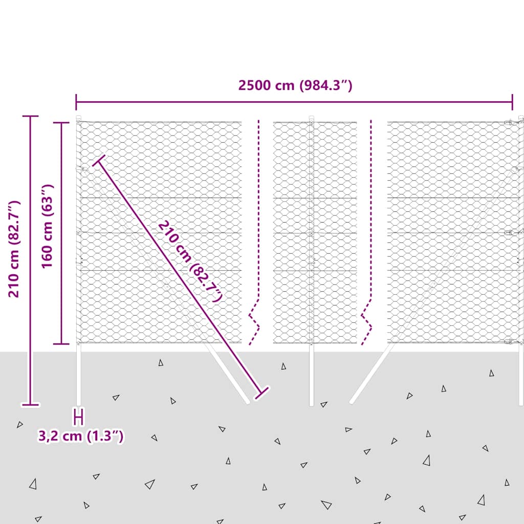 Der Sechseckzaun ist genau das, was du brauchst, um Gärten und Außenbereiche einzufrieden. Mit seiner lebhaften grünen Farbe und dem stabilen Aufbau fügt er sich perfekt ein und bietet dir Haltbarkeit und Sicherheit – einfach toll für all deine Outdoor-Bedürfnisse. Langlebiges Material: Der Zaun ist aus Stahl mit mattem Finish und robust genug für alle Wetterbedingungen, damit du langfristigen Gebrauch und Schutz für deine Außenbereiche genießen kannst. Perfekt für Gärten: Die lebendige grüne Farbe integriert sich wunderbar in die Natur und bietet eine starke Barriere für Haustiere und Kinder, während sie deinen Außenbereich noch ansprechender macht. Einfacher Zusammenbau: Der Zaun kann von nur zwei Personen mit ein paar Werkzeugen wie Hammer, Bohrmaschine und Maßband schnell und einfach aufgebaut werden – ganz benutzerfreundlich! Vielseitige Größen: Der Zaun hat eine Standardgröße von 25 x 1,6 m, die für verschiedene Außeneinrichtungen geeignet ist. Komplettes Set: Dieses Set kommt mit allem, was du brauchst, wie Zaunpfosten, Netzgewebe, Spannseilen und Klammern, sodass du alles für eine einfache Installation hast.