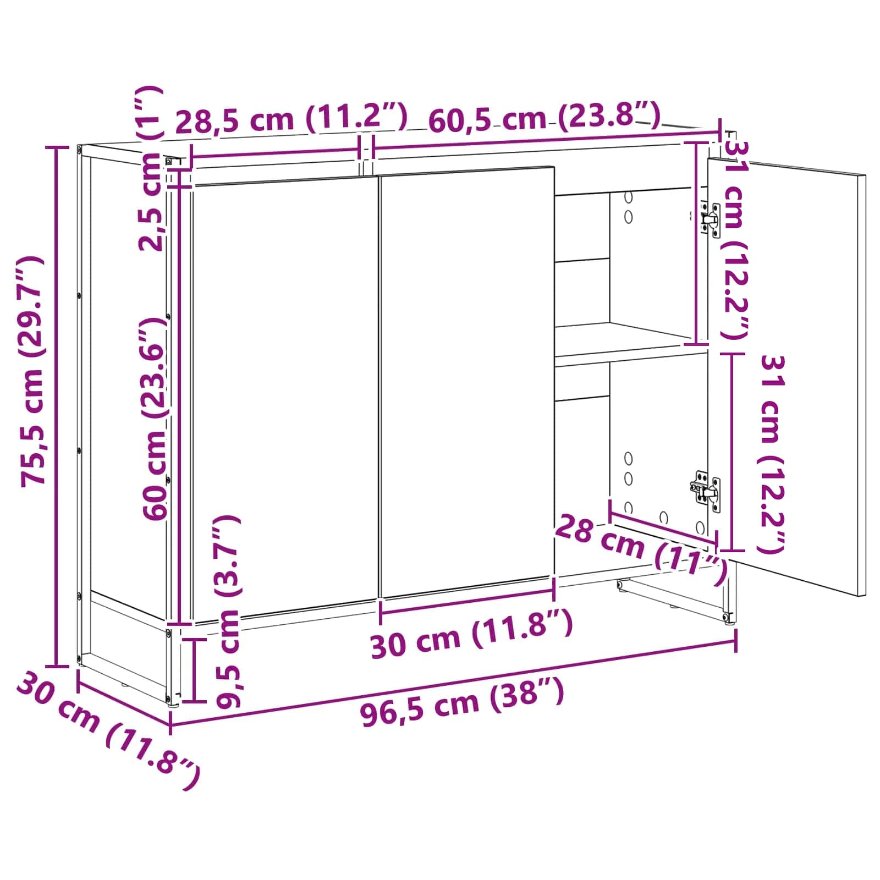 - Gesamtabmessungen: 96,5 x 30 x 75 cm (L x B x H)