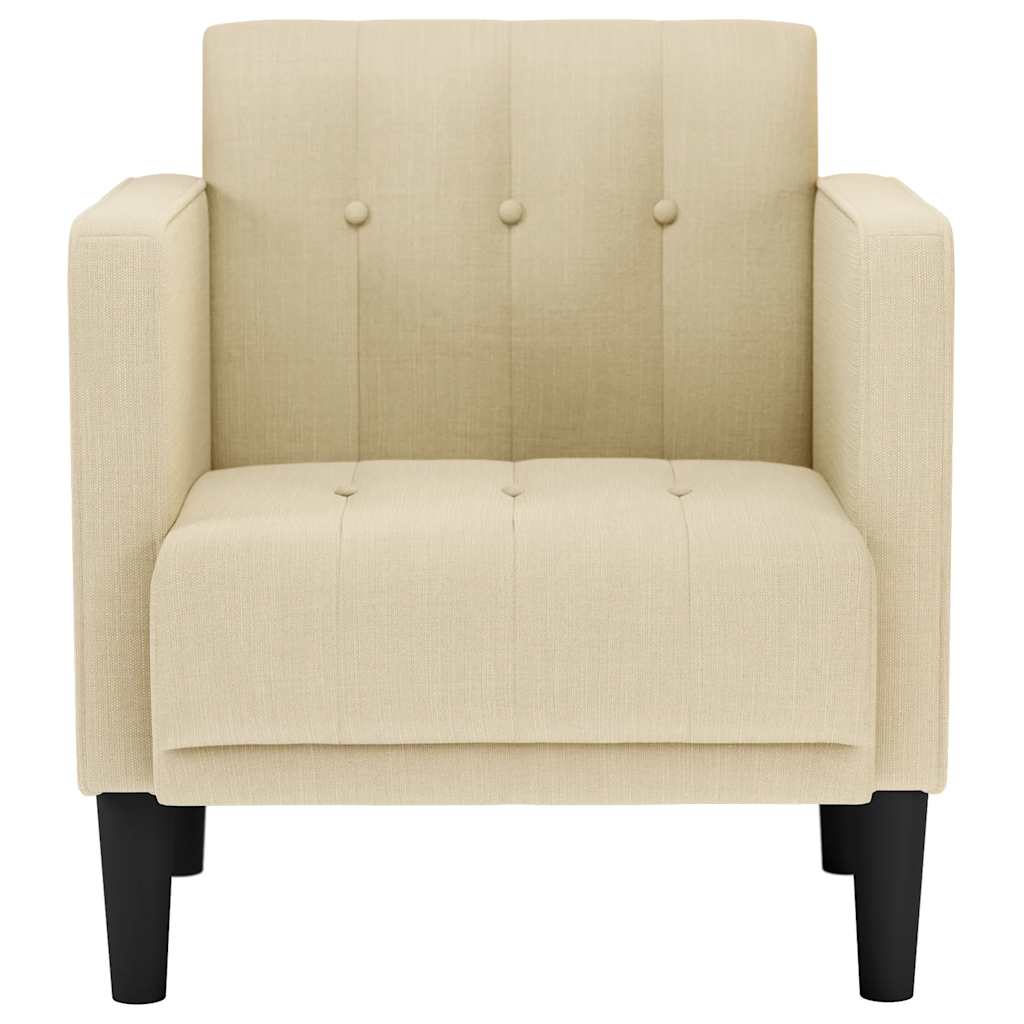 Erlebe außergewöhnlichen Komfort und Stil mit dem Sofasessel, perfekt zum Plaudern, Lesen, Fernsehen oder einfach nur zum Entspannen. Weiches und strapazierfähiges Material: Polyestergewebe fühlt sich weich an, ist atmungsaktiv sowie strapazierfähig und sorgt so für höchsten Komfort und Behaglichkeit.Stützendes Sitzen: Die Kombination aus Schaumstoff und Feder bietet sowohl Komfort als auch Unterstützung. Der Schaumstoff polstert deinen Körper sanft ab, während die Federn die Struktur aufrechterhalten, sodass ein Durchhängen verhindert wird und ein lang anhaltender Komfort gewährleistet ist, egal ob du kurz sitzt oder lange entspannst.Robustes und stabiles Gestell: Der Sperrholzrahmen und die stützenden Beine des Sofas sorgen für Stabilität, sodass du ein bequemes Sitzerlebnis genießen kannst, ohne dich um die Stabilität sorgen zu müssen.Vielseitig einsetzbar: Ob im Wohnzimmer, im Schlafzimmer, im Arbeitszimmer oder im Empfangsbereich, das Sofa fügt sich mühelos in jede Umgebung ein. Von großzügigen Räumen bis hin zu intimen Ecken, sein flexibles Design sorgt dafür, dass es jeden Raum ohne Einschränkungen aufwertet.Auffälliges Design: Das Sofa besticht durch die Kombination von Stoff und Sperrholz-Armlehnen, die die Verschmelzung der verschiedenen Stilelemente unterstreicht und sich sowohl an moderne als auch an traditionelle Innenräume anpasst.