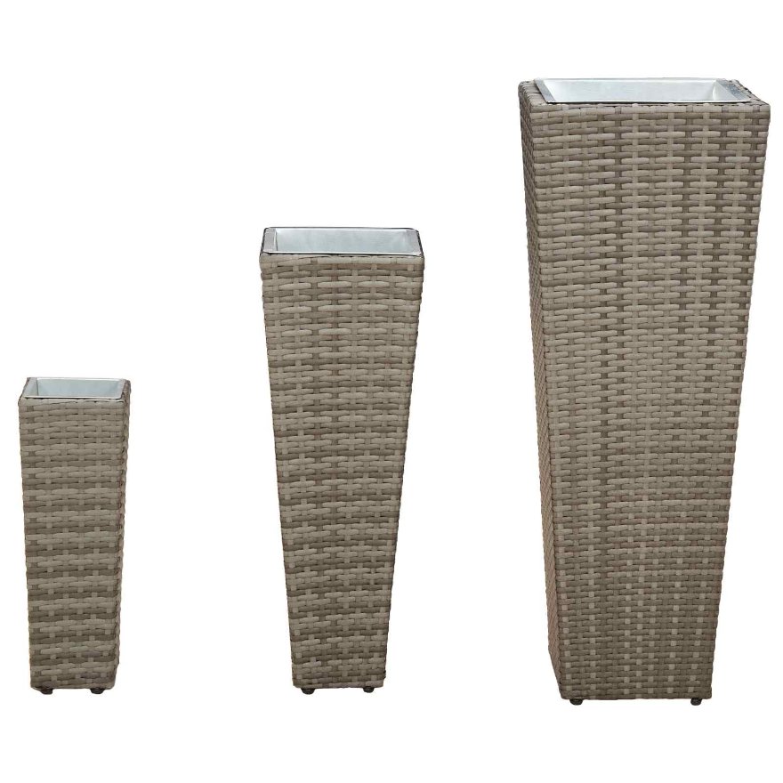 Mit diesem stilvollen Outdoor-Set bringst du einen eleganten Touch in deinen Garten oder auf deine Terrasse. Es hat modernen Style und ist auch super praktisch. Die schlanke, trapezförmige Form und das schicke Geflechtmuster passen perfekt zu verschiedenen Außenbereichen und laden dazu ein, deine Umgebung zu begrünen. Ideal für alle, die ihren Außenbereich mit etwas botanischer Eleganz aufpeppen möchten. Materialien: Diese sind aus robustem Metall gefertigt, das für seine Langlebigkeit und Widerstandsfähigkeit bekannt ist. Der behandelte Metallrahmen hält auch starker Sonneneinstrahlung stand und bleibt somit lange schön. Enthaltene Funktionen: Die herausnehmbaren Innenbehälter machen das Einpflanzen und Pflegen deiner Pflanzen zum Kinderspiel. Du kannst ohne Stress umtopfen, ohne die Wurzeln oder die Erde durcheinanderzubringen. Das spart Zeit und hält die Sauerei in Schach. Designstil: Mit dem coolen Geflecht und der Lackoberfläche haben diese Elemente einen richtigen Hingucker, der gut in moderne Gärten passt. Sie vereinen Funktionalität und Stil und geben deinem Außenbereich einen eleganten Look. Saisonale Nutzung: Optimal für Frühling und Sommer gedacht, passt sich das Set den Pflegeanforderungen an und sorgt für fröhliches Wachsen. Es hält den wechselnden Wetterbedingungen stand und verleiht deinem Garten über die Saison hinweg Farbe. Pflege & Wartung: Halte das Design mit minimalem Aufwand in Schuss – ein feuchtes Tuch reicht, um Staub und Schmutz zu entfernen. So bleibt es lange schön und ansprechend. Diese einfache Routine macht Pflege zum Kinderspiel, ohne viel Zeit oder Mühe zu kosten.