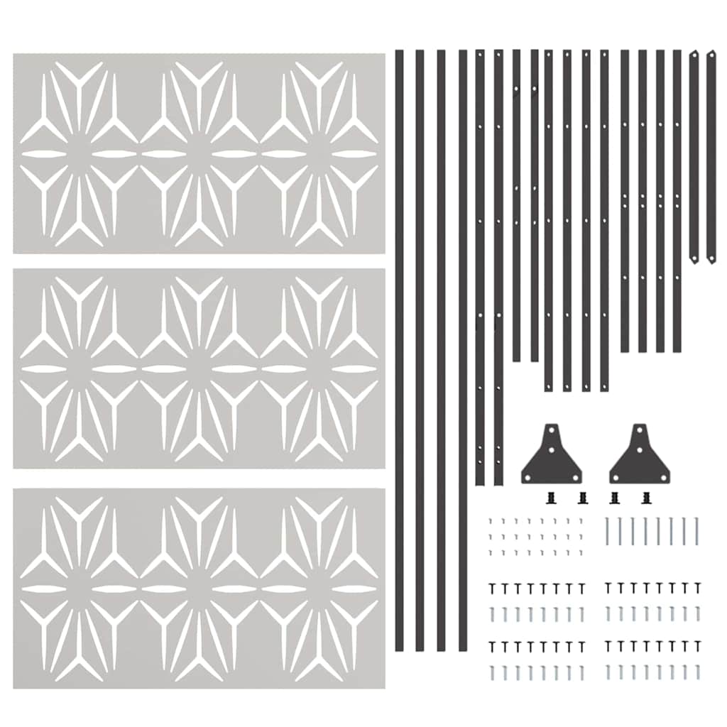 Dieser Garten-Sichtschutz ist die perfekte, stylische Lösung für deine Gartenprivatsphäre. Mit seinem rechteckigen Format und den klaren Linien ist er das ideale Accessoire für moderne Umgebungen, vor allem in Gärten und auf Terrassen. Dank seiner stabilen Konstruktion schützt dieser Sichtschutz deine Außenbereiche vor neugierigen Blicken und Wind und schafft eine ruhige Atmosphäre zum Entspannen oder für gesellige Runden. Materialien: Der Garten-Sichtschutz ist aus langlebigem Stahl gefertigt, der für seine Stärke und Langlebigkeit bekannt ist. Das wetterfeste Material hält sein schickes Aussehen und trägt dazu bei, in allen Jahreszeiten ein schönes Ambiente zu schaffen. Enthaltene Komponenten: Der Sichtschutz kommt als komplette Einheit und ist einfach aufzubauen. Sein unauffälliges Design fügt sich gut in bestehende Outdoor-Arrangements ein und bewahrt die entspannte Atmosphäre deines Raumes. Jedes einzelne Teil sorgt für Stabilität und Langlebigkeit, damit alles sicher bleibt. Eigenschaften / Funktion / Design: Mit seinem modernen Look passt dieser Sichtschutz perfekt zu der Ästhetik deines Gartens. Obwohl er einfach aussieht, bietet er durch seine Funktion eine angenehme Privatsphäre, ohne dabei einengend zu wirken. Er ist praktisch und optisch ansprechend und harmoniert mit unterschiedlichen Einrichtungsstilen, von minimalistisch bis modern. Empfohlene Verwendung: Dieser Sichtschutz ist ideal für den Außenbereich, perfekt in Gärten und auf Terrassen. Sein stabiler Aufbau ist optimal für Bereiche, die Witterungseinflüssen ausgesetzt sind, und bietet einen tollen Hintergrund für Entspannungsecken oder private Gartenbereiche, die den Charme deines Zuhauses unterstreichen. Pflege & Wartung: Um sein schickes Aussehen zu erhalten, solltest du ihn regelmäßig mit mildem Reinigungsmittel und Wasser reinigen. Außerdem solltest du sicherstellen, dass Schrauben und Teile gut fest sind. Um die Lebensdauer zu verlängern, sind einfache Kontrollen und minimale Wartung nötig, damit der Sichtschutz auch langfristig in Top-Zustand bleibt.