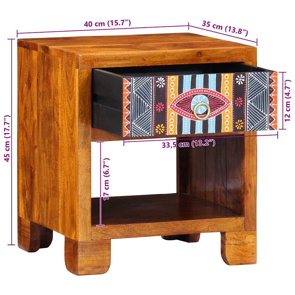 Dieser coole Beistelltisch aus Mangoholz ist eine beeindruckende Ergänzung, die perfekt in dein Wohnzimmer oder Schlafzimmer passt. Seine geometrischen Muster und warmen Brauntöne machen ihn zu einem praktischen Stauraum und gleichzeitig zu einem stilvollen Blickfang, super geeignet für Dekoration oder eine Lampe. Einzigartiges geometrisches Design: Dieser Beistelltisch hat ein cooles geometrisches Muster, das deiner Deko eine frische Mischung aus Texturen und Formen gibt und ihn zum echten Blickfang macht. Robuste Mangoholz-Bauweise: Für die Ewigkeit gemacht, aus solidem Mangoholz, das für seine Langlebigkeit bekannt ist und dafür sorgt, dass du ein Möbelstück hast, das dem täglichen Gebrauch standhält. Polierte Oberfläche: Die glänzende Oberfläche sieht klasse aus und macht die Pflege leicht – einfach abwischen und gut halten. Viel Stauraum: Mit zwei Schubladen und eingebauten Regalen hilft dir dieser vielseitige Tisch, deinen Raum ordentlich zu halten. Multifunktionales Design: Perfekt für Wohnzimmer oder Schlafzimmer, kann er als Akzentstück, Nachttisch oder zusätzlicher Stauraum genutzt werden.