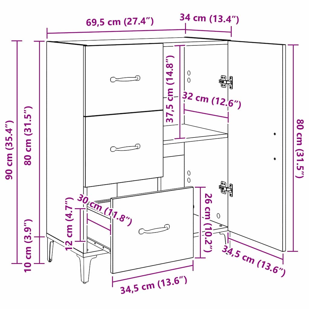 - Gesamtabmessungen: 69,5 x 34 x 90 cm (L x B x H)