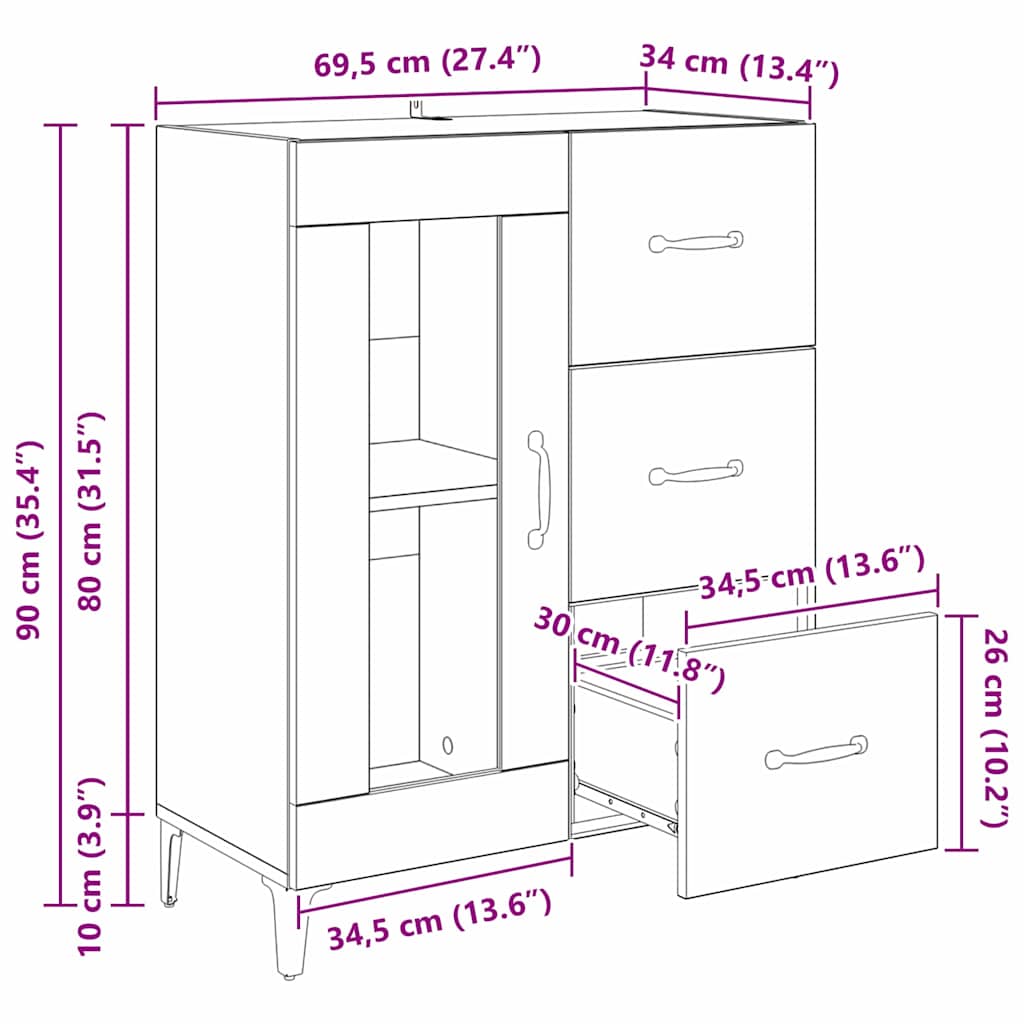 - Gesamtabmessungen: 69,5 x 34 x 90 cm (L x B x H)