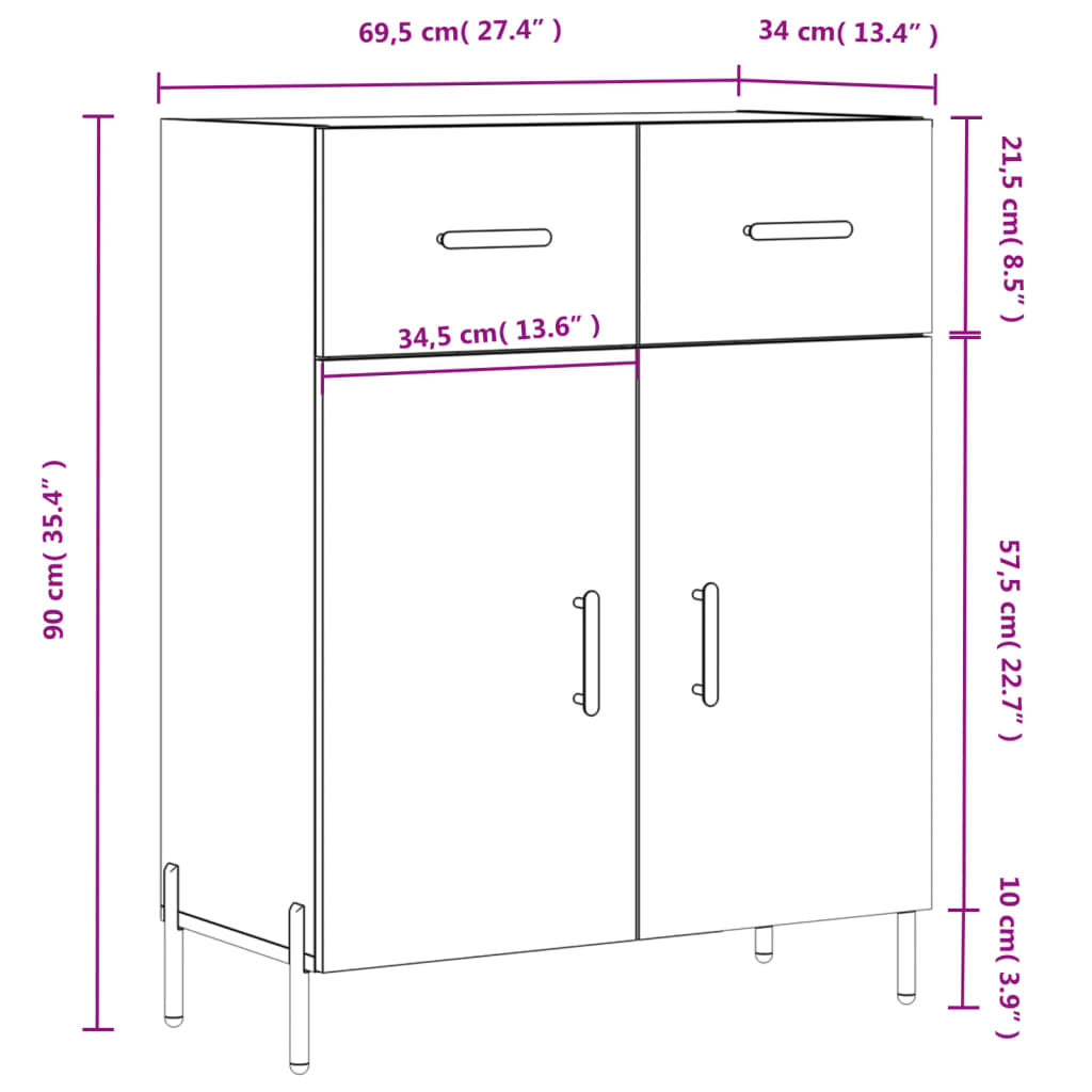 Sideboard Betongrau 69,5x34x90 cm Holzwerkstoff
