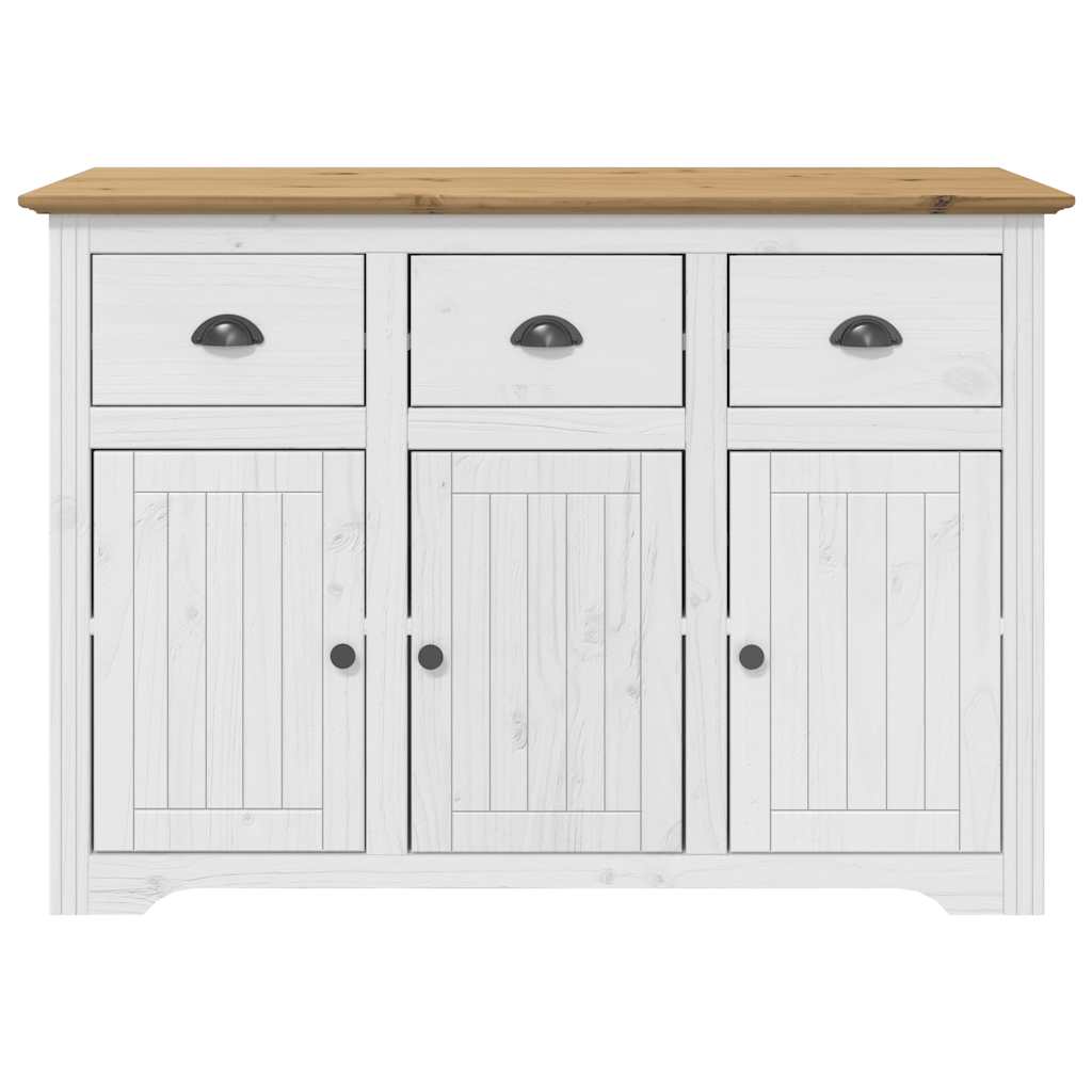 Dieses klassische Sideboard im französischen Design wird all deinen Ansprüchen gerecht und ist eine hervorragende Bereicherung für dein Zimmer. Massives Kiefernholz: Massives Kiefernholz ist ein wunderschönes Naturmaterial. Kiefernholz weist eine gerade Maserung auf und die Aststellen verleihen dem Material seine charakteristische, rustikale Optik.Reichlich Stauraum: Der Schrank ist mit 3 Schubladen und Fächern hinter den Türen ausgestattet, um verschiedene Alltagssachen ordentlich und griffbereit zu verstauen.Präsentation: Auf der Oberplatte des Sideboards finden auch Lieblingsfotos, Dekoartikel oder Blumen Platz, um dein Leben zu bereichern.Metallgriffe: Die Metallgriffe erleichtern das Öffnen und Schließen der Schubladen und Türen. Sie tragen auch zur ansprechenden Optik des Schrankes bei.Charmanter französischer Stil: Verleihe deiner Inneneinrichtung eine inspirierende französische Note! Achtung:Um ein Umkippen zu vermeiden, sollte dieses Produkt mit der mitgelieferten Wandhalterung gesichert werden.