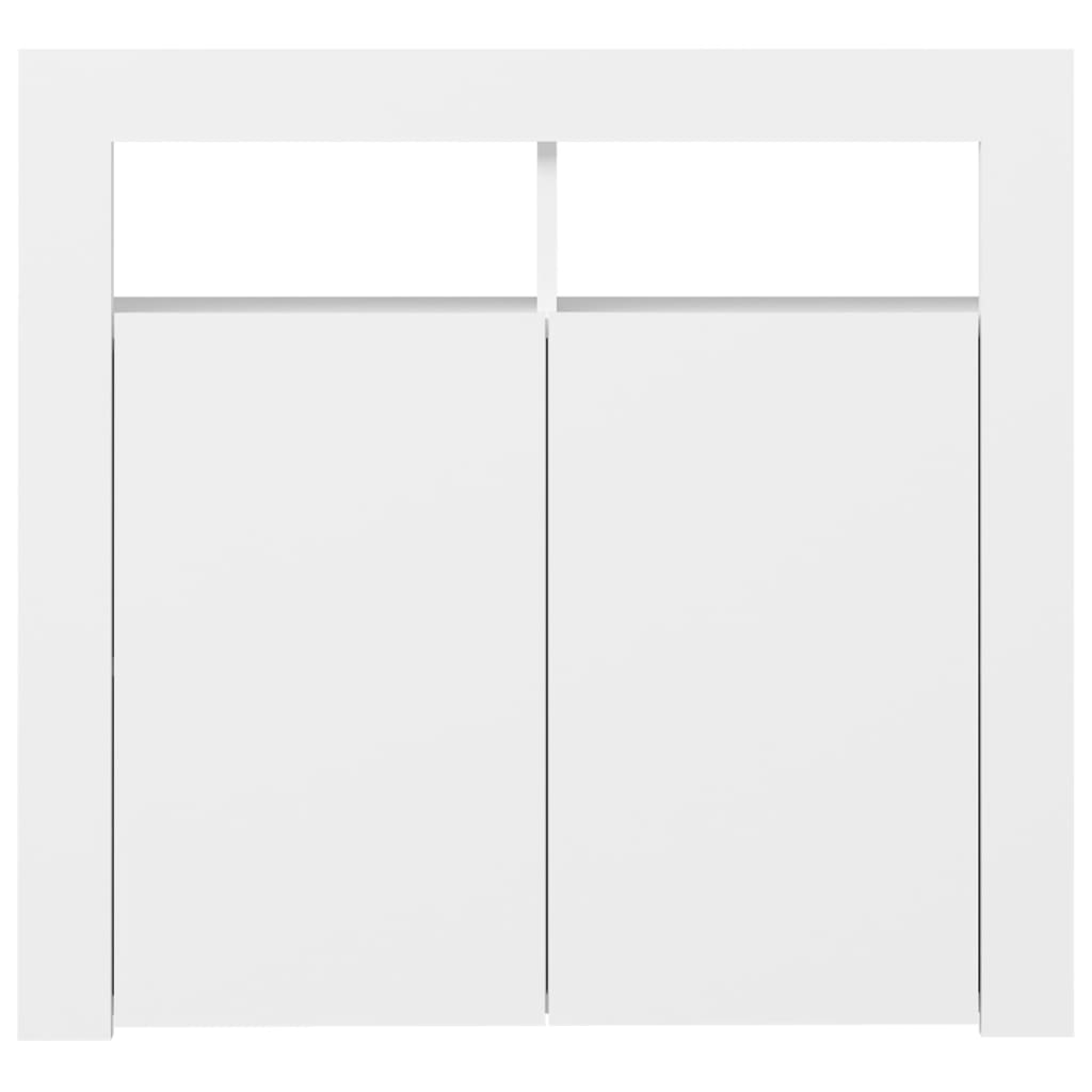 Dieses Sideboard mit LED-Leuchten im minimalistischen Design ist eine praktische und zugleich dekorative Ergänzung für Ihr Zuhause! Langlebiges Material: Der Holzwerkstoff ist von außergewöhnlicher Qualität mit glatter Oberfläche und zeichnet sich außerdem durch Festigkeit, Stabilität und Widerstandsfähigkeit gegen Feuchtigkeit aus.RGB-LED-Lichter: Das Buffet ist mit leuchtenden RGB-LED-Leuchten ausgestattet. Mit verschiedenen anpassbaren Menüs kannst du die Farbe der Lichter mühelos ändern und sie sogar so einstellen, dass sie sich automatisch anpassen. Diese LED-Leuchten unterstreichen nicht nur den modernen Look des Sideboards, sondern tragen auch zu seiner trendigen Ausstrahlung bei.Ausreichend Stauraum: Der Aufbewahrungsschrank bietet viel Platz, um deine alltäglichen Dinge übersichtlich und leicht zugänglich aufzubewahren.Präsentationsfunktion: Die robuste Oberseite des Flurschranks eignet sich ideal zum Ausstellen von Dekorationsgegenständen, Bilderrahmen oder Topfpflanzen.Praktische Türen: Verstecke deine Utensilien hinter den Türen des Seitenschranks, um sie vor Staub zu schützen. Gut zu wissen:Das Produkt verfügt über einen USB-Anschluss, für den eine zertifizierte 5V-USB-Stromquelle erforderlich ist (nicht im Lieferumfang enthalten).