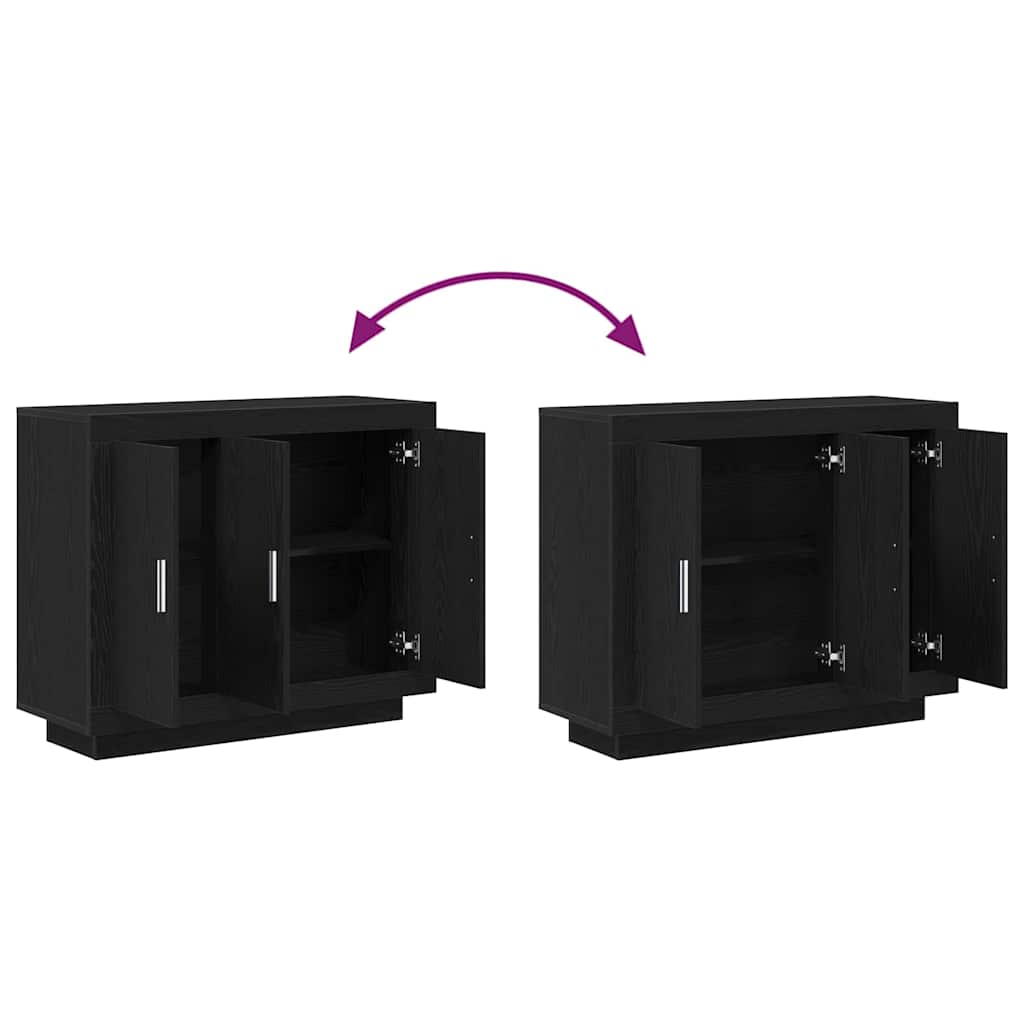 Dieses schicke Buffet-Sideboard aus massivem Eichenholz mit einem eleganten schwarzen Finish bringt Stil in dein Ess- oder Wohnzimmer. Das moderne Design kombiniert sich gut mit verschiedenen Einrichtungsstilen und bietet zusätzlichen Platz zum Servieren von Speisen oder zur ordentlichen Aufbewahrung von Essenssachen. Viel Stauraum: Mit drei Scharniertüren und zwei Fächern hast du viel Platz für deine Essensbedürfnisse und kannst alles ordentlich verstauen. Moderner Stil: Das schlanke Design und die matte schwarze Oberfläche schaffen eine moderne Atmosphäre, die deinen Raum aufwertet und gut in deine Einrichtung passt. Robustes Material: Aus massiver Eiche – dieses Sideboard sieht nicht nur gut aus, sondern ist auch strapazierfähig genug für den täglichen Gebrauch und wird dir lange Freude bereiten. Einfache Pflege: Mit der glatten Oberfläche kannst du es ganz einfach sauber halten – einfach kurz mit einem weichen Tuch abwischen, damit es schick bleibt und Abnutzung vermeidet. Vielseitig einsetzbar: Perfekt für Esszimmer, Wohnzimmer oder Partys, bringt dieses Buffet-Sideboard sowohl Praktikabilität als auch Stil in jeden Raum und ist eine tolle Wahl für jedes Zuhause.
