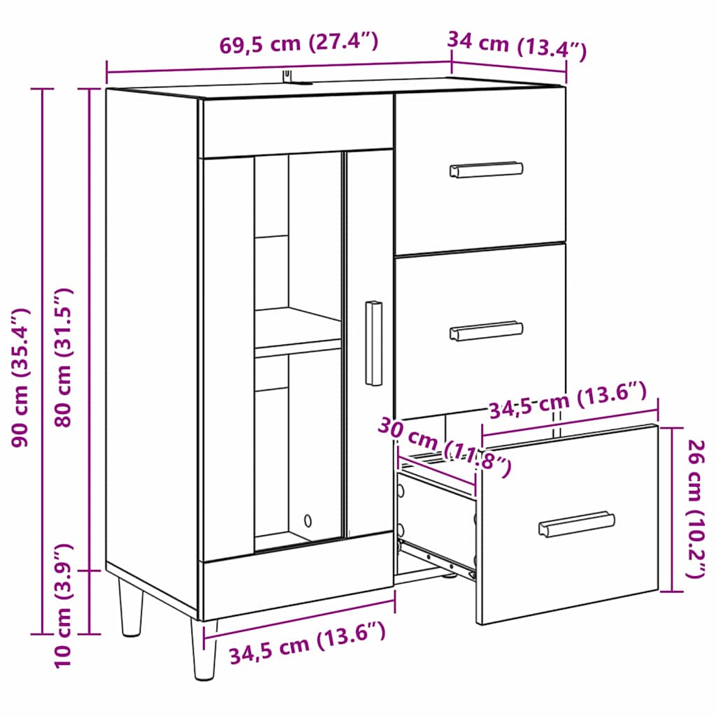 - Gesamtabmessungen: 69,5 x 34 x 90 cm (L x B x H)