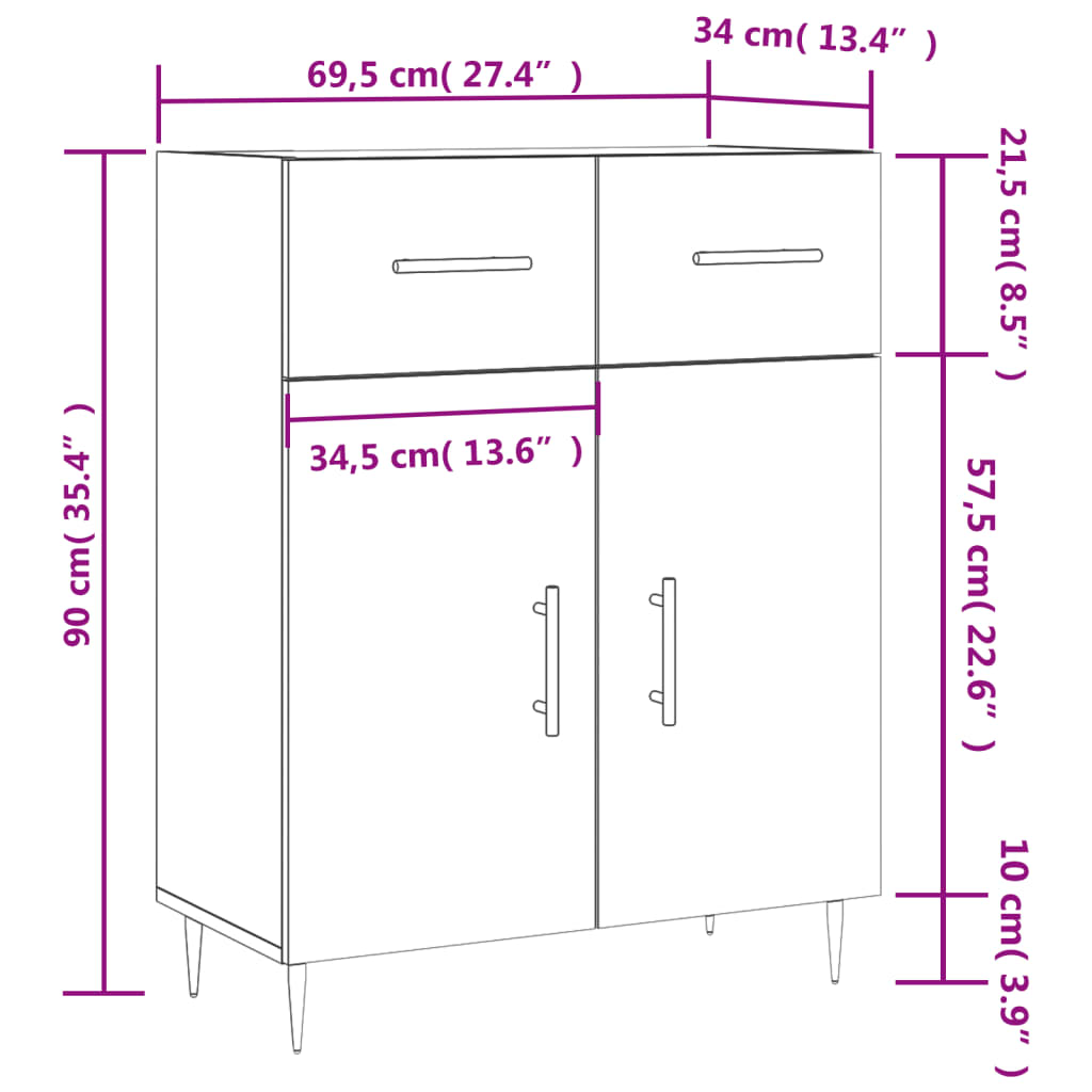 Sideboard Sonoma-Eiche 69,5x34x90 cm Holzwerkstoff