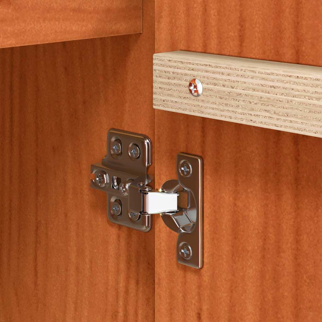 Diese rustikale Anrichte ist eine spannende und stylische Ergänzung für dein Ess- oder Wohnzimmer und verbindet Funktionalität mit einem ansprechenden Look. Mit ihrem charmanten rustikalen Stil bietet sie flexible Stauraummöglichkeiten, die gut zu verschiedenen Einrichtungstrends passen. Das massive Kiefernholz sieht nicht nur toll aus, sondern ist auch stark genug, um als zuverlässiger Platz für Geschirr, Bettwäsche oder andere wichtige Dinge zu dienen. Massivholz-Kiefer-Konstruktion: Die Anrichte aus solidem Kiefernholz ist stabil und gibt jedem Raum ein warmes, natürliches Flair. Die Holzmaserung sorgt für ein einladendes Ambiente, und die robuste Bauweise garantiert langlebige Qualität. Elegantes rustikales Design: Mit ihrem hübschen rustikalen Look bringt diese Anrichte mehr Stil in dein Ess- oder Wohnzimmer. Die natürlichen Holzfarben und klassischen Designelemente schaffen eine gemütliche Atmosphäre und die rechteckige Form passt perfekt an jede Wand. Geräumige Stauraummöglichkeiten: Mit drei massiven Türen und zwei klassischen Schubladen hast du viel Platz für deine wichtigen Sachen. Alles ist einfach zu bedienen, damit du deinen Raum ordentlich halten kannst. Perfekte Passform für verschiedene Räume: Die Anrichte eignet sich toll für Ess- und Wohnzimmer und fügt sich super in verschiedene Raumgrößen ein. Perfekt für alles, von Geschirr bis zu Bettwäsche. Praktische Pflegeanleitung: Montiere sie nach Anleitung und sichere sie an der Wand, damit sie nicht umkippt. Verwende zum Reinigen milde Mittel, um den Glanz zu erhalten.