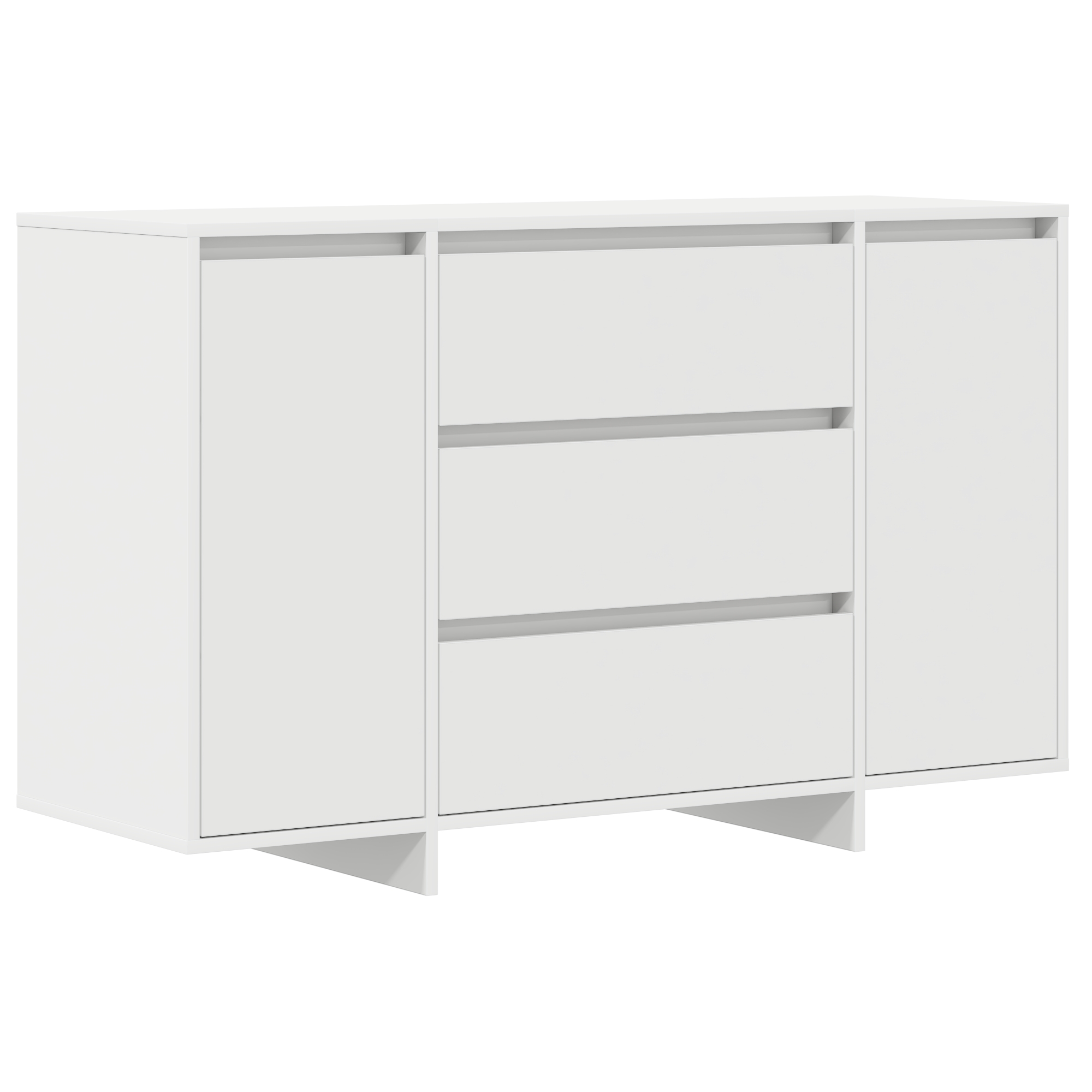 Dieses Buffet Sideboard ist perfekt, um jedes Ess- oder Wohnzimmer mit seinem modernen, schlanken Look und dem glatten weißen Finish aufzuhellen. Es ist praktisch und stylisch für all deine Aufbewahrungsbedürfnisse, egal, ob du eine Party schmeißen oder einfach deinen Eingangsbereich ordentlich halten möchtest. Viel Stauraum: Das Sideboard hat fünf geräumige Fächer, ideal zur ordentlichen Aufbewahrung von Geschirr, Besteck und Tischdecken – ein absolutes Muss für dein Esszimmer. Stylisches Design: In schickem Weiß lackiert, fügt sich dieses Buffet Sideboard wunderbar in moderne Dekorationen ein. Sein einfaches, elegantes Aussehen wird jeden Raum aufhellen und ist dabei super praktisch. Robustes Material: Aus hochwertigem Holzwerkstoff gefertigt, sorgt dieses Sideboard für langfristige Haltbarkeit und meistert den Alltag problemlos und sieht dabei super aus. Einfache Montage: Mit klaren Anleitungen und nur wenigen benötigten Werkzeugen ist der Aufbau dieses Sideboards ganz einfach. Perfekt für alle, die Wert auf Praktikabilität legen, ohne auf Stil zu verzichten. Vielseitige Nutzung: Ob zum Servieren im Esszimmer oder als Konsolentisch im Wohnzimmer, dieses Buffet Sideboard erfüllt verschiedene Bedürfnisse. Sorge für einen ordentlichen und stilvollen Raum für jeden Anlass.