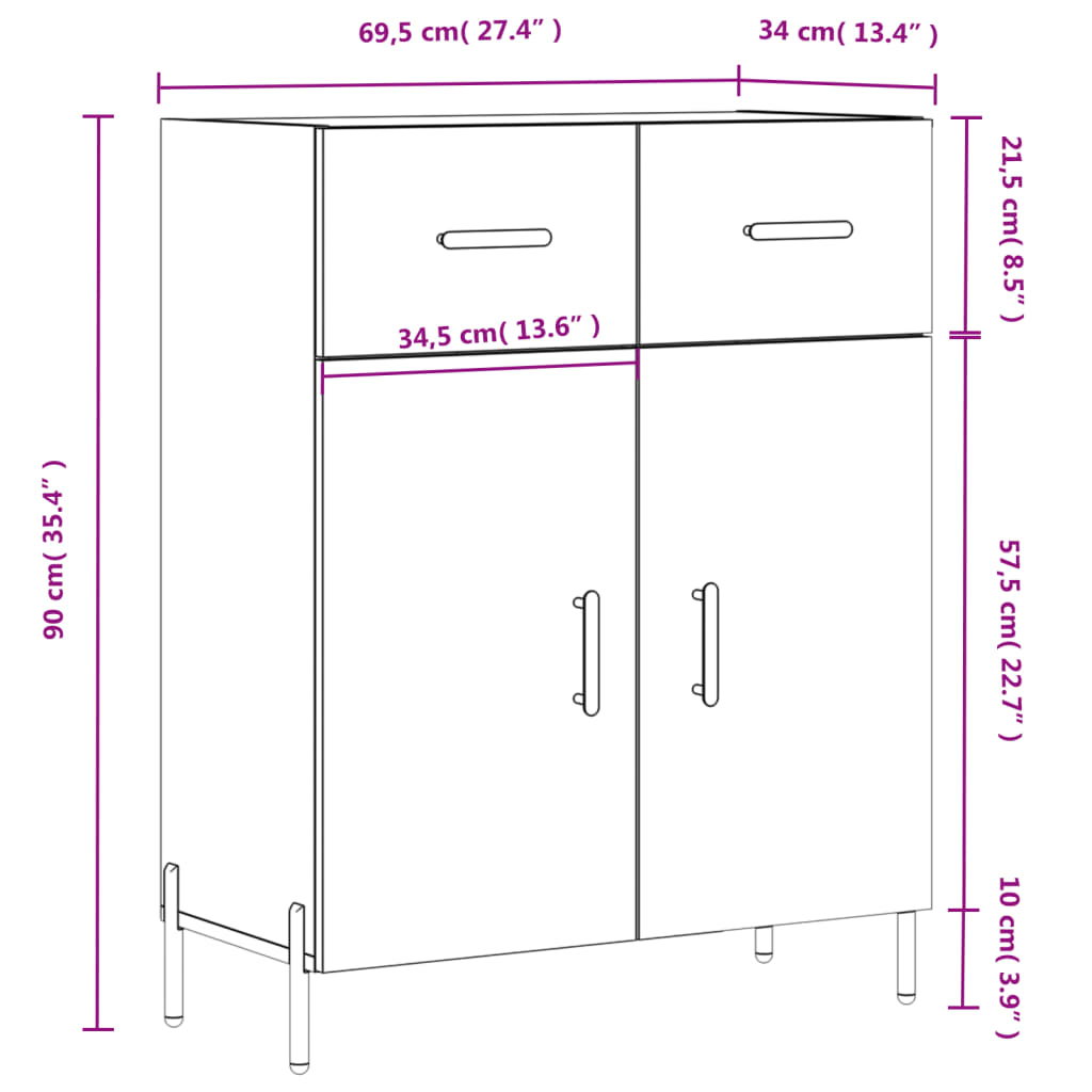 Sideboard Weiß 69,5x34x90 cm Holzwerkstoff