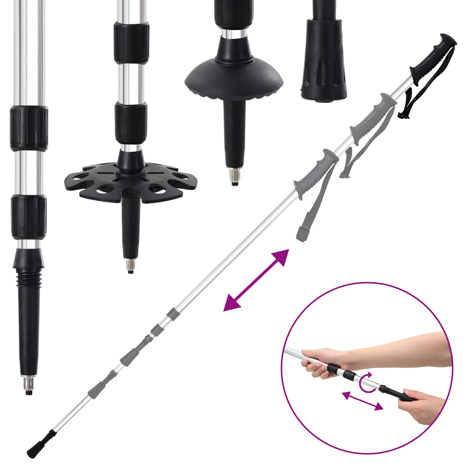 Dieses 3 IN 1 moderne Schneeschuhset mit Wanderstöcken ist perfekt für alle, die den Winter und Abenteuer im Schnee lieben. Es steht für einfache Handhabung und Funktionalität und verspricht ein leichtes Gleiten über schneebedeckte Wege, ideal für Outdoor-Fans. Durch sein modernes Design spricht es sowohl Anfänger als auch erfahrene Schneeschuhwanderer an, die nach Freiheit und Aufregung suchen. Aluminiumrahmen & Polyethylenboden: Robust und langlebig, hält der Aluminiumrahmen auch rauen Bedingungen stand. Die Kältebeständigkeit sorgt dafür, dass du sicher durch den Schnee kommst. Komplettset: Enthält ein Paar Schneeschuhe, zwei verstellbare Wanderstöcke und eine Tragetasche. Ideal für jeden, der alles für sein Schneewander-Abenteuer in einem Paket sucht. Alles ist leicht zu transportieren und zu lagern, damit du immer für Abenteuer gewappnet bist. Kältebeständige Eigenschaften: Der HDPE-Boden ist perfekt für kalte Umgebungen, und der verstellbare Fersenriemen sorgt dafür, dass deine Füße gut sitzen. So bleibst du auf jedem Terrain sicher und kontrolliert. Vielseitige Nutzung: Ob beim Wandern auf den Bergen oder in versteckten Wäldern, die Schneeschuhe passen von Größe 38 bis 48 und das Ratschen-System bietet eine flexible Anpassung für verschiedene Nutzer. Einfache Pflege: Bewahre die Ausrüstung an einem kühlen, trockenen Ort auf und wische sie mit einem trockenen Tuch ab, um sie in Top-Zustand zu halten. Vermeide den Gebrauch auf Asphalt, um den Boden zu schonen, und überprüfe sie vor jeder Wintersaison.