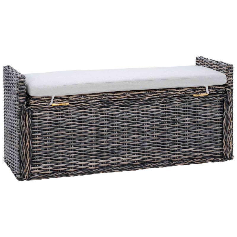 Diese Garderobenbank mit Stauraum ist ein wunderbares Stück, das sich nahtlos in moderne Räume einfügt, dank ihrer klaren Linien und des minimalistischen Designs. Sie bietet dir sowohl Sitzplätze als auch Stauraum und ist eine klasse Ergänzung für dein Wohnzimmer und Schlafzimmer. Mit ihrer eleganten Rattan-Konstruktion und dem bequemen Kissen ist sie nicht nur praktisch, sondern auch super stylisch. Materialien: Diese Bank ist aus hochwertigem Rattan und stabiler Mahagoni gefertigt. Das sorgt nicht nur für Langlebigkeit, sondern auch für einen eleganten Look. Das Rattan hat eine besondere Struktur und Wärme, während das Mahagoniholz die Stabilität erhöht. Diese Kombination bringt sowohl Style als auch Funktionalität und peppt deine Wohnräume auf. Enthaltene Komponenten: Das lange Kissen, das über die gesamte Sitzfläche reicht, sorgt für Komfort bei längerem Sitzen. Das Kissen ist modern designt und sieht gut aus, während es sich leicht abnehmen lässt, um es zu reinigen. Eigenschaften / Funktion / Design: Das durchdachte Design macht die Bank vielseitig einsetzbar – als Sitzgelegenheit oder Stauraum. Sie eignet sich hervorragend zum Verstauen von Büchern, Decken oder Saisonkleidung und sorgt dafür, dass alles ordentlich aussieht. Mit ihrem Fokus auf klare Linien und praktische Nutzung trifft sie den Puls modernen Möbeldesigns. Empfohlene Verwendung: Diese Bank ist perfekt für drinnen. Stell sie hinter dein Sofa im Wohnzimmer für extra Sitzplätze oder in deinem Schlafzimmer, um Ordnung zu schaffen. Sie hat die richtige Größe, um bequem unter Fenstern oder an Wänden zu stehen und ist super nützlich, ohne den Raum zu überladen. Pflege & Wartung: Um die Bank in top Zustand zu halten, wisch die Rattanteile regelmäßig mit einem trockenen Tuch ab. Das Kissen kannst du bei Bedarf mit etwas Seifenwasser reinigen. Vermeide scharfe Chemikalien, damit die Materialien schön bleiben. Mit diesen einfachen Pflegetipps bleibt die Bank lang dein treuer Begleiter in der Wohnung.