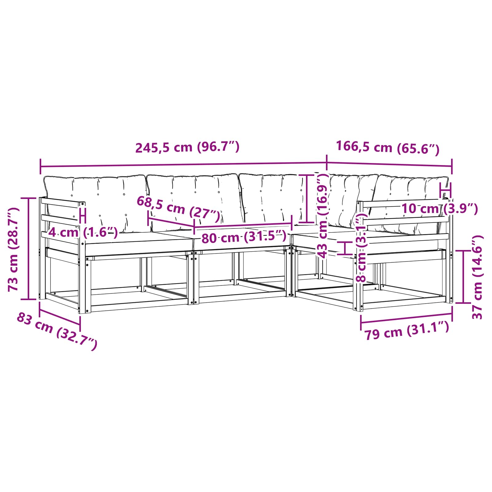 - Gesamtabmessungen: 245,5 x 166,5 x 73 cm (L x B x H)