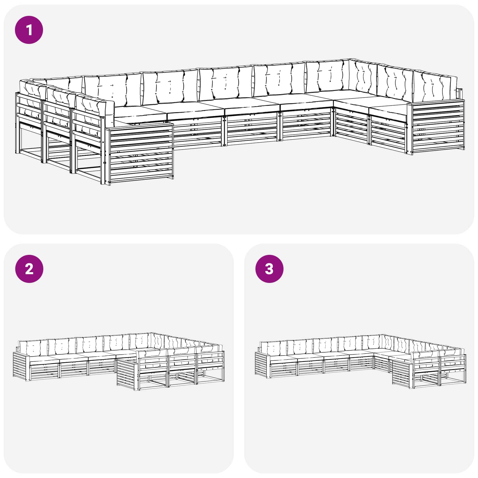 - 12 x Rückenkissen: 80 x 43 x 10 cm (LxBxH)