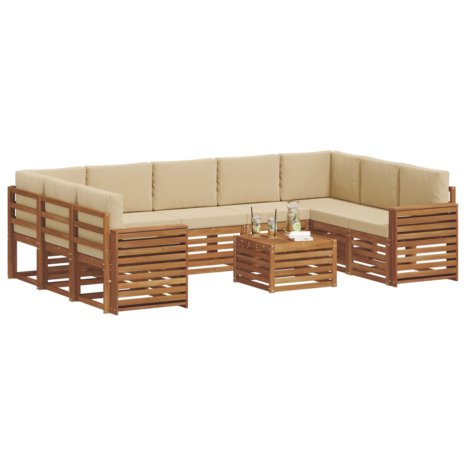 Das Gartenmöbel-Set verbindet stylisches Design mit nützlicher Funktionalität - ein echtes Highlight für jeden Garten oder jede Terrasse. Mit klaren Linien und einem modernen Look wirkt es elegant und unterstützt gemütliche Stunden im Freien und fröhliche Treffen mit Freunden. Das starke Akazienholz sorgt für Langlebigkeit und sieht dabei immer gut aus. Es ist die perfekte Wahl für alle, die praktische und stilvolle Möbel für ihren Garten suchen. Langlebiges Akazienholz: Aus solidem Akazienholz gefertigt, ist dieses Gartenmöbelset bekannt für seine Robustheit und Widerstandsfähigkeit gegen Witterungseinflüsse. Die stabile Konstruktion sorgt für zuverlässige Unterstützung und bleibt lange stabil, während die warme Holzfarbe jeden Garten oder jede Terrasse aufwertet. Wetterfestes Design: Mit einer lackierten Oberfläche kommt dieses Gartenmöbelset mit einem zusätzlichen Schutz gegen Sonne, leichten Regen und andere Wettereinflüsse. Das polierte Finish hilft, das Aussehen und die Funktionalität lange zu erhalten, sodass das Set über die Jahre in Garten, auf der Terrasse oder im Hinterhof wasserfest bleibt. Stilvolles Design: Jedes Element, ob Armlehne oder Rückenlehne, ist mit einem Blick auf Stil und Funktionalität gestaltet. Unterstützende Merkmale sorgen für mehr Komfort, während das zusammenpassende Design ein harmonisches Gesamtbild für vielfältige Outdoor-Anlässe schafft. Komfort und Flexibilität: Das modulare Design erlaubt es Ihnen, die Möbel in unterschiedlichen Anordnungen zu nutzen, die auf verschiedene Räume und Bedürfnisse zugeschnitten sind. Egal ob entspannen, feiern oder mal in Ruhe lesen – das Set passt sich jeder Außenumgebung perfekt an und maximiert den Komfort. Einfache Pflege: Damit die Möbel gut in Schuss bleiben, genügt es, die Oberfläche mit einem feuchten Tuch abzuwischen und scharfe Reinigungsmittel zu vermeiden. Mit ein wenig regelmäßiger Pflege bleibt die Optik toll und die Lebensdauer der Möbel verlängert sich.