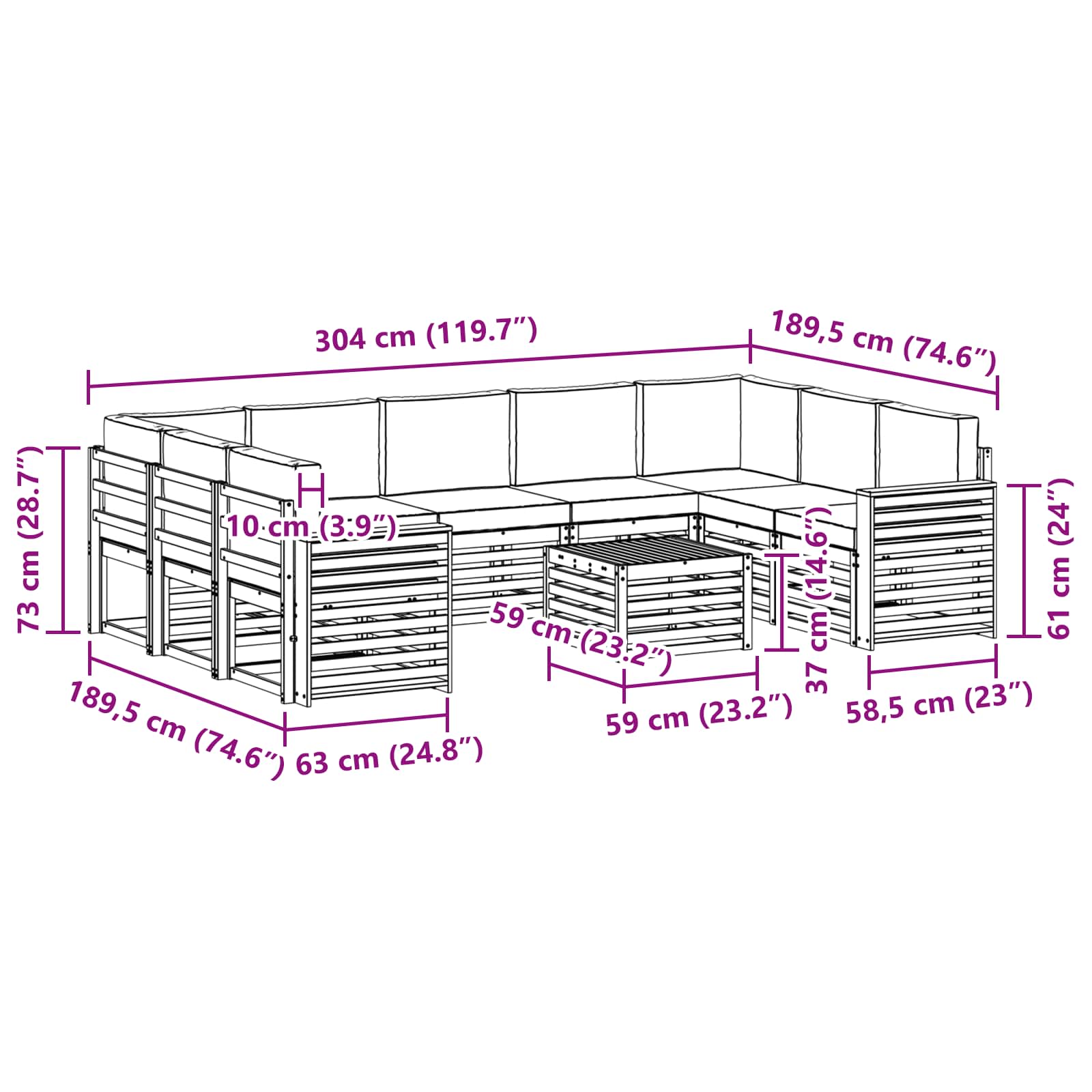 - 9 x Sitzkissen: 60 x 60 x 8 cm (LxBxH)