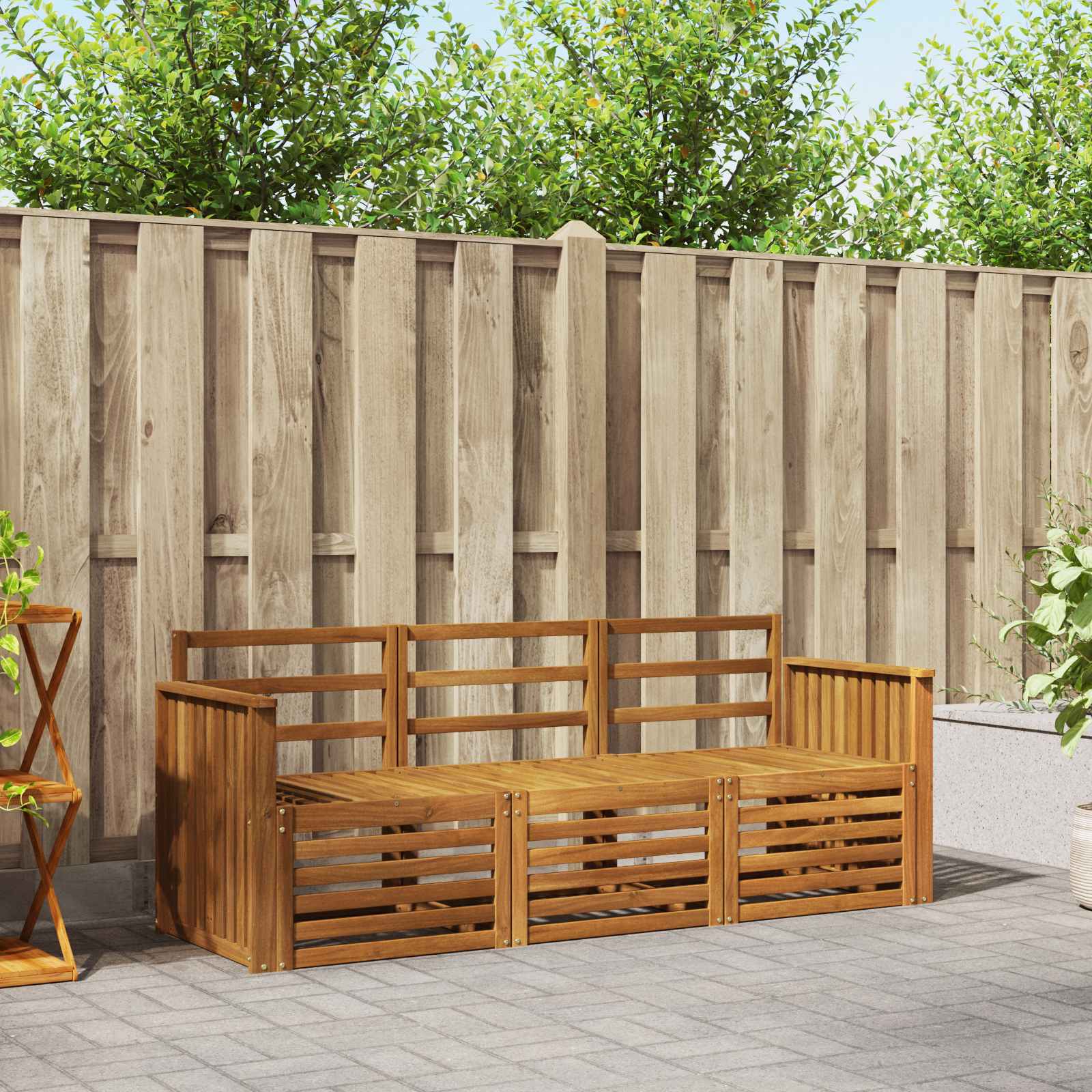 Dieses Outdoor-Sitzsofa-Set ist ein echter Blickfang für jeden Garten, Patio oder Poolbereich. Es vereint modernen Style mit natürlicher Schönheit. Aus solidem Akazienholz gefertigt, ist es langlebig und bietet eine angenehme Sitzmöglichkeit für gesellige Runden oder entspannte Stunden. Materialien: Gefertigt aus solidem Akazienholz hat dieses Outdoor-Set eine natürliche Holzstruktur, die perfekt in jede Außenumgebung passt. Die warmen Farbtöne bringen Gemütlichkeit und Charakter mit und machen deine Outdoor-Oase noch einladender. Inklusive Komponenten: Das Set enthält modulare Elemente für flexible Sitzarrangements. Mit stabilen Armlehnen und einem soliden Holzrahmen hast du einen einheitlichen Look, der einen gemütlichen Platz für gesellige Momente im Freien schafft. Merkmale / Funktion / Design: Das Sofaset hat ein lamellenförmiges Design, das für gute Luftzirkulation sorgt und verhindert, dass sich Wasser staut. Die einfache Gestaltung konzentriert sich auf Funktionalität und kommt mit einer modernen, aufgeräumten Ästhetik. Empfohlene Verwendungen: Ideal für Gärten, Patios oder Poolbereiche, bietet das Set einen ruhigen Ort zum Sonnenbaden, geselligem Beisammensein oder zum Genießen einer Tasse Kaffee. Es deckt sämtliche Bedürfnisse ab, egal ob du mit Freunden zusammen bist oder einfach einen entspannten Nachmittag alleine verbringen willst. Pflege & Wartung: Halte das Sofaset wie neu, indem du es regelmäßig mit einem feuchten Lappen abwischst. Dank der einfachen Pflege bleibt es auch bei Nutzung im Freien schön und funktional.