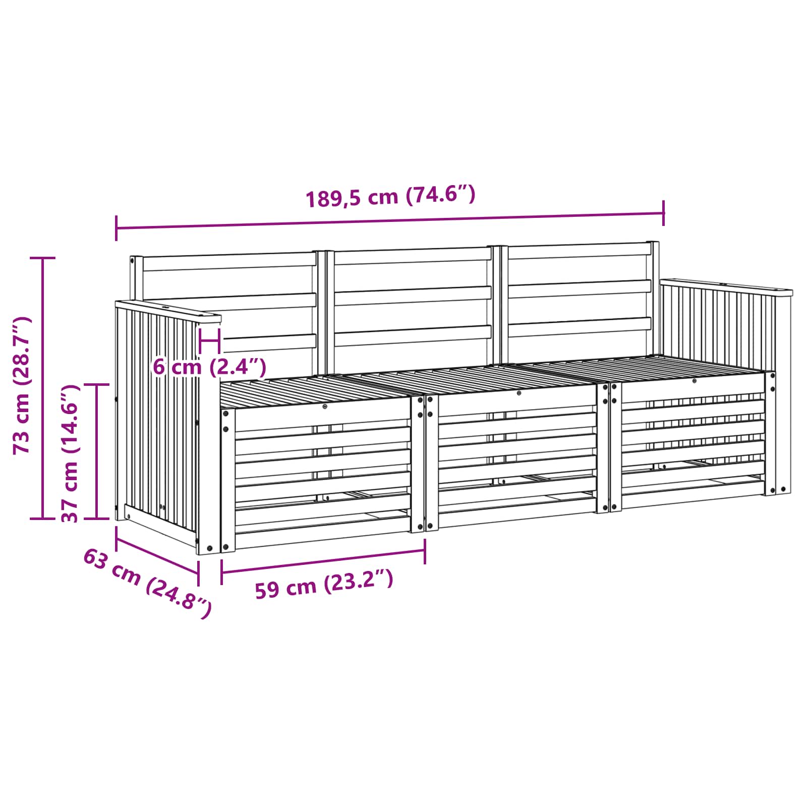 - Gesamtabmessungen: 189,5 x 63 x 73 cm (L x B x H)