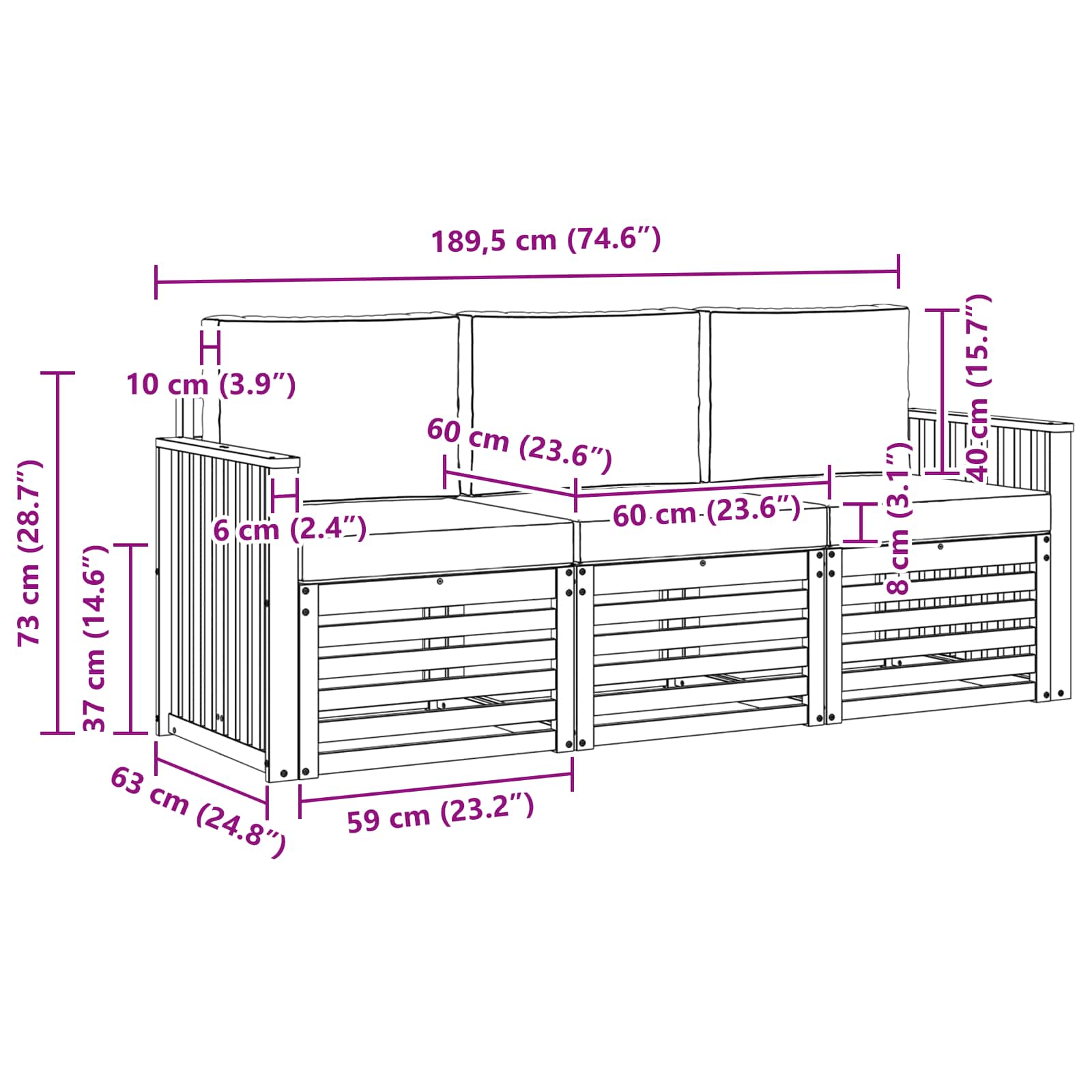 - Gesamtabmessungen: 189,5 x 63 x 73 cm (L x B x H)