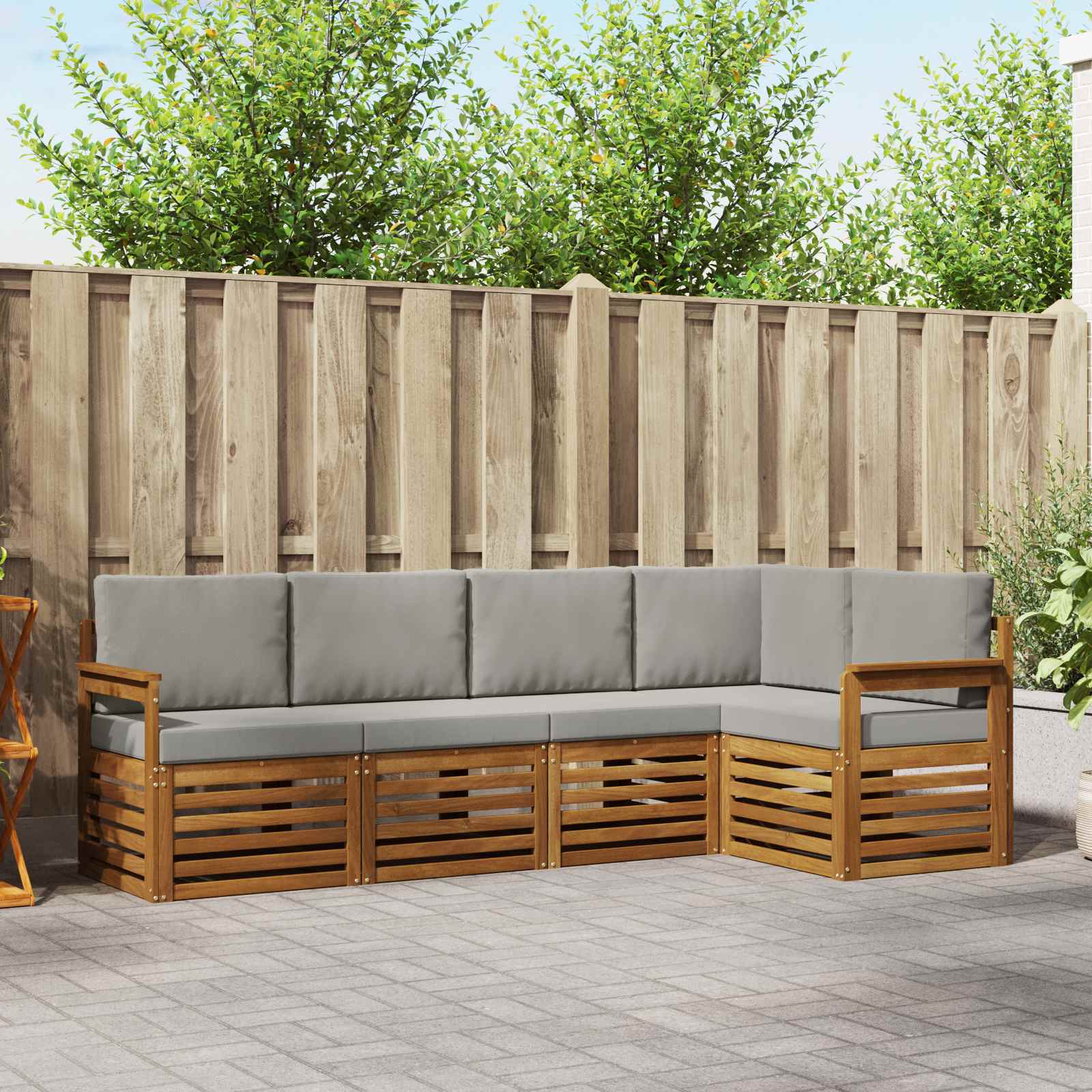 Das Outdoor-Möbel-Set bringt Stil und Funktionalität zusammen und wird zum Blickfang in jedem Garten oder auf jeder Terrasse. Mit seinem modernen Design und den klaren Linien sorgt es für Eleganz und lädt gleichzeitig zum Entspannen und Feiern im Freien ein. Hergestellt aus massivem Akazienholz, bietet das Set nicht nur Haltbarkeit, sondern auch eine langanhaltende Anziehungskraft und ist perfekt für alle, die praktische, schicke Gartenmöbel suchen. Robustes Massivholz Akazie: Das Set aus massivem Akazienholz ist für seine Langlebigkeit bekannt und widersteht den Witterungsbedingungen. Die stabile Bauweise sorgt für langanhaltenden Komfort, während die warme Holzfarbe jedem Außenbereich einen schönen Akzent verleiht. Wetterfestes Design: Die lackierte Oberfläche schützt das Set vor Sonne, leichten Regen und anderen äußeren Einflüssen. Dies hilft, die Optik und Funktionalität langfristig zu erhalten und sorgt für Haltbarkeit in deinem Garten, auf der Terrasse oder im Hinterhof. Stilvolles Design: Jedes Element, von den Armlehnen bis zu den Rückenlehnen, ist sowohl hübsch als auch praktisch gestaltet. Zusätzlicher Komfort durch unterstützende Features und ein harmonisches Design schaffen ein beeindruckendes Gesamtbild für jede Outdoor-Party. Komfort & Flexibilität: Das modulare Design ermöglicht dir verschiedene Konfigurationen, die zu deinem Raum und Bedarf passen. Ob für gemütliche Momente, gesellige Runden oder zum Lesen, das Set fügt sich sanft in jede Umgebung ein und maximiert den Komfort. Einfache Pflege: Halte die Möbel im Top-Zustand, indem du sie mit einem feuchten Tuch abwischst und aggressive Reinigungsmittel vermeidest. Regelmäßige Pflege hilft, das Aussehen zu bewahren und die Lebensdauer der Möbel zu verlängern.