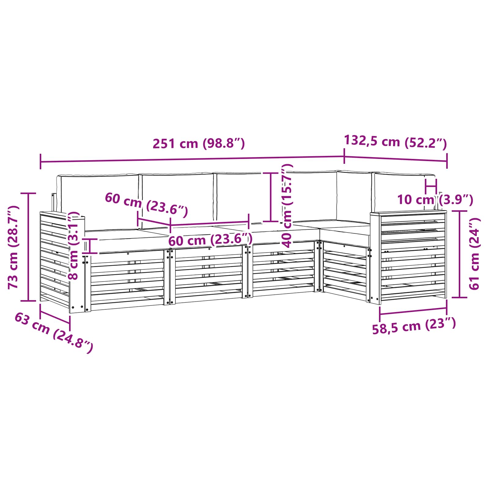 - 5 x Seat Cushion: 60 x 60 x 8 cm (LxWxH)