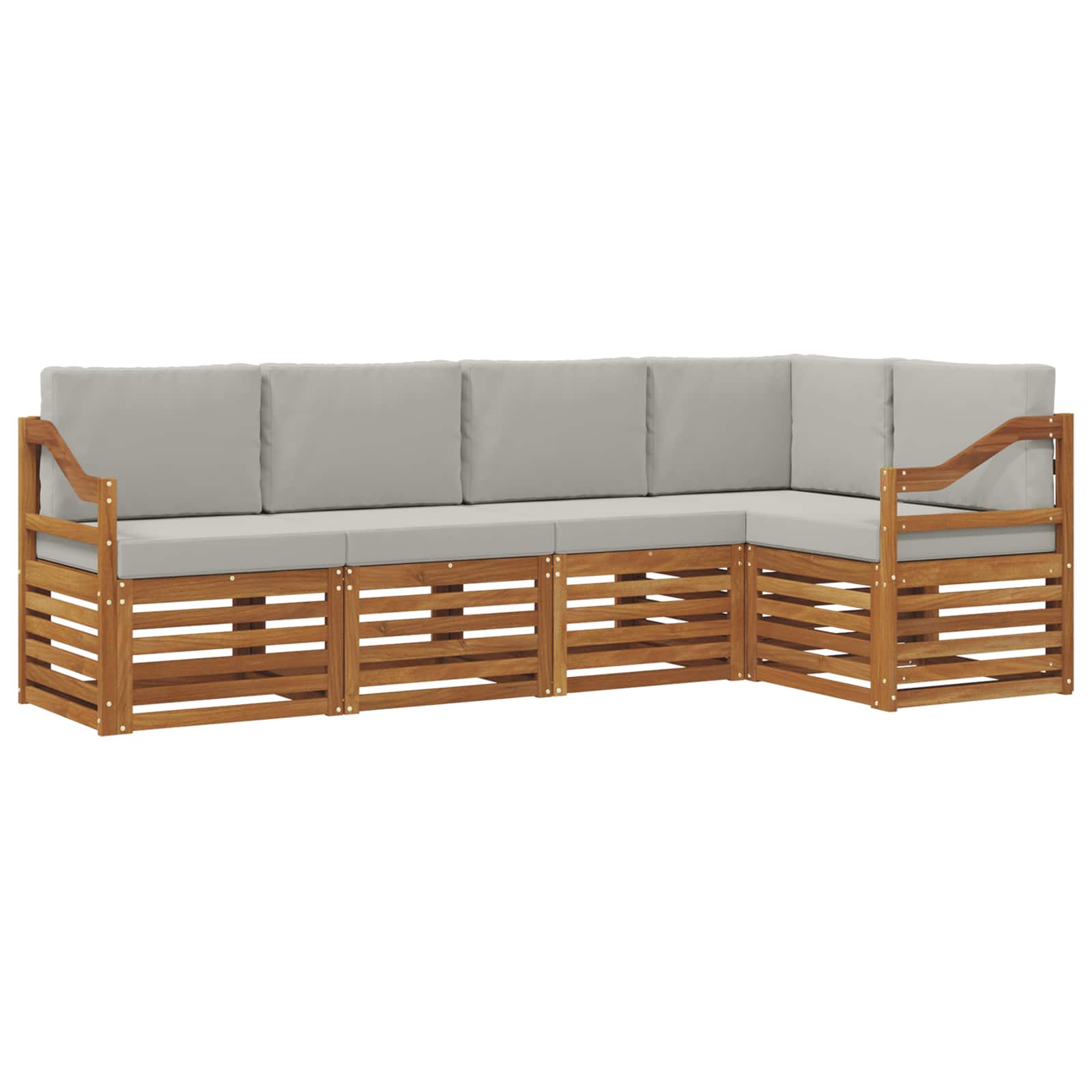 Das Outdoor-Möbel-Set bringt Stil und Funktionalität zusammen und wird zum Blickfang in jedem Garten oder auf jeder Terrasse. Mit seinem modernen Design und den klaren Linien sorgt es für Eleganz und lädt gleichzeitig zum Entspannen und Feiern im Freien ein. Hergestellt aus massivem Akazienholz, bietet das Set nicht nur Haltbarkeit, sondern auch eine langanhaltende Anziehungskraft und ist perfekt für alle, die praktische, schicke Gartenmöbel suchen. Robustes Massivholz Akazie: Das Set aus massivem Akazienholz ist für seine Langlebigkeit bekannt und widersteht den Witterungsbedingungen. Die stabile Bauweise sorgt für langanhaltenden Komfort, während die warme Holzfarbe jedem Außenbereich einen schönen Akzent verleiht. Wetterfestes Design: Die lackierte Oberfläche schützt das Set vor Sonne, leichten Regen und anderen äußeren Einflüssen. Dies hilft, die Optik und Funktionalität langfristig zu erhalten und sorgt für Haltbarkeit in deinem Garten, auf der Terrasse oder im Hinterhof. Stilvolles Design: Jedes Element, von den Armlehnen bis zu den Rückenlehnen, ist sowohl hübsch als auch praktisch gestaltet. Zusätzlicher Komfort durch unterstützende Features und ein harmonisches Design schaffen ein beeindruckendes Gesamtbild für jede Outdoor-Party. Komfort & Flexibilität: Das modulare Design ermöglicht dir verschiedene Konfigurationen, die zu deinem Raum und Bedarf passen. Ob für gemütliche Momente, gesellige Runden oder zum Lesen, das Set fügt sich sanft in jede Umgebung ein und maximiert den Komfort. Einfache Pflege: Halte die Möbel im Top-Zustand, indem du sie mit einem feuchten Tuch abwischst und aggressive Reinigungsmittel vermeidest. Regelmäßige Pflege hilft, das Aussehen zu bewahren und die Lebensdauer der Möbel zu verlängern.