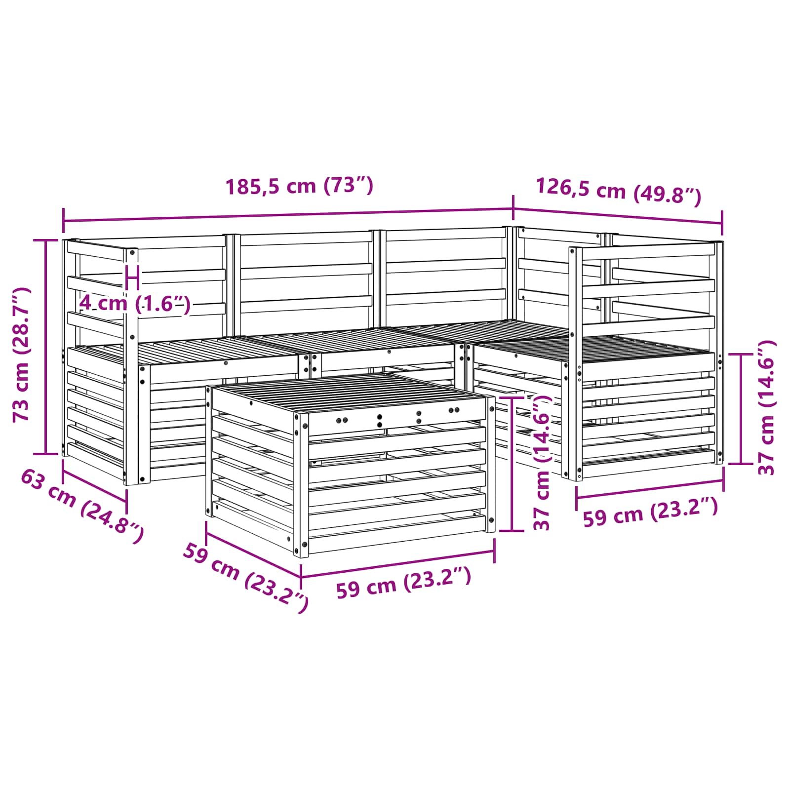 - Gesamtabmessungen: 59 x 59 x 37 cm (L x B x H)