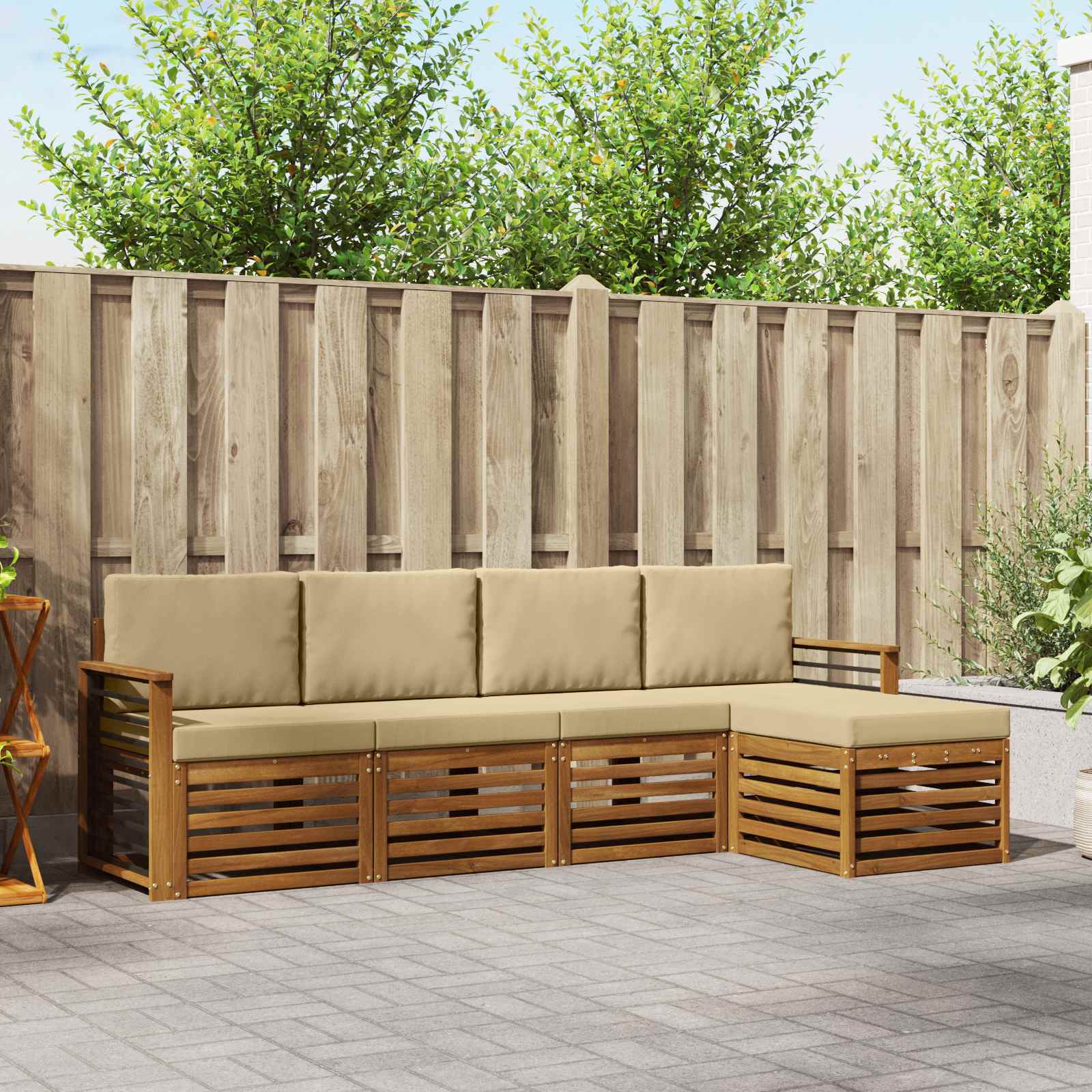Dieses stylische Outdoor-Sofaset verwandelt jeden Patio, Garten oder Poolbereich in eine chillige Lounge-Oase. Mit seinem modernen Design bringt es Funktionalität und Stil zusammen – ganz schlicht, aber dennoch ansprechend. Der warme Braunton fügt sich super in jedes Outdoor-Dekor ein und die klaren Linien mit minimalistischen Akzenten betonen den zeitlosen Charme von Holz. Exzellenz aus massivem Akazienholz: Das Sofaset besteht aus robustem Akazienholz, das für seine Langlebigkeit und natürliche Textur bekannt ist. Es hält den Witterungsbedingungen stand und bleibt dabei optisch ansprechend. Modular-flexibilität: Durch die modulare Bauweise bist du flexibel und kannst das Sofa an deinen Raum und deinen Stil anpassen. Diese Anpassungsfähigkeit ist toll, um individuelle Sitzarrangements zu schaffen. Ästhetik aus natürlichem Holz: Der Charme dieses Sofas kommt von der natürlichen Holztextur und dem schlichten Design, das ideal für Außenbereiche ist, die Wert auf Einfachheit und Eleganz legen. Bequeme Wartung: Die Pflege ist super einfach—ein feuchtes Tuch genügt, um Schmutz und Staub zu entfernen und die Qualität zu erhalten, mit minimalem Pflegeaufwand. Mühelose Montage: Für die Montage reicht ein normaler Schraubendreher und zwei Personen, was die Ersteinrichtung kinderleicht macht und dafür sorgt, dass du die Möbel schnell nutzen kannst.