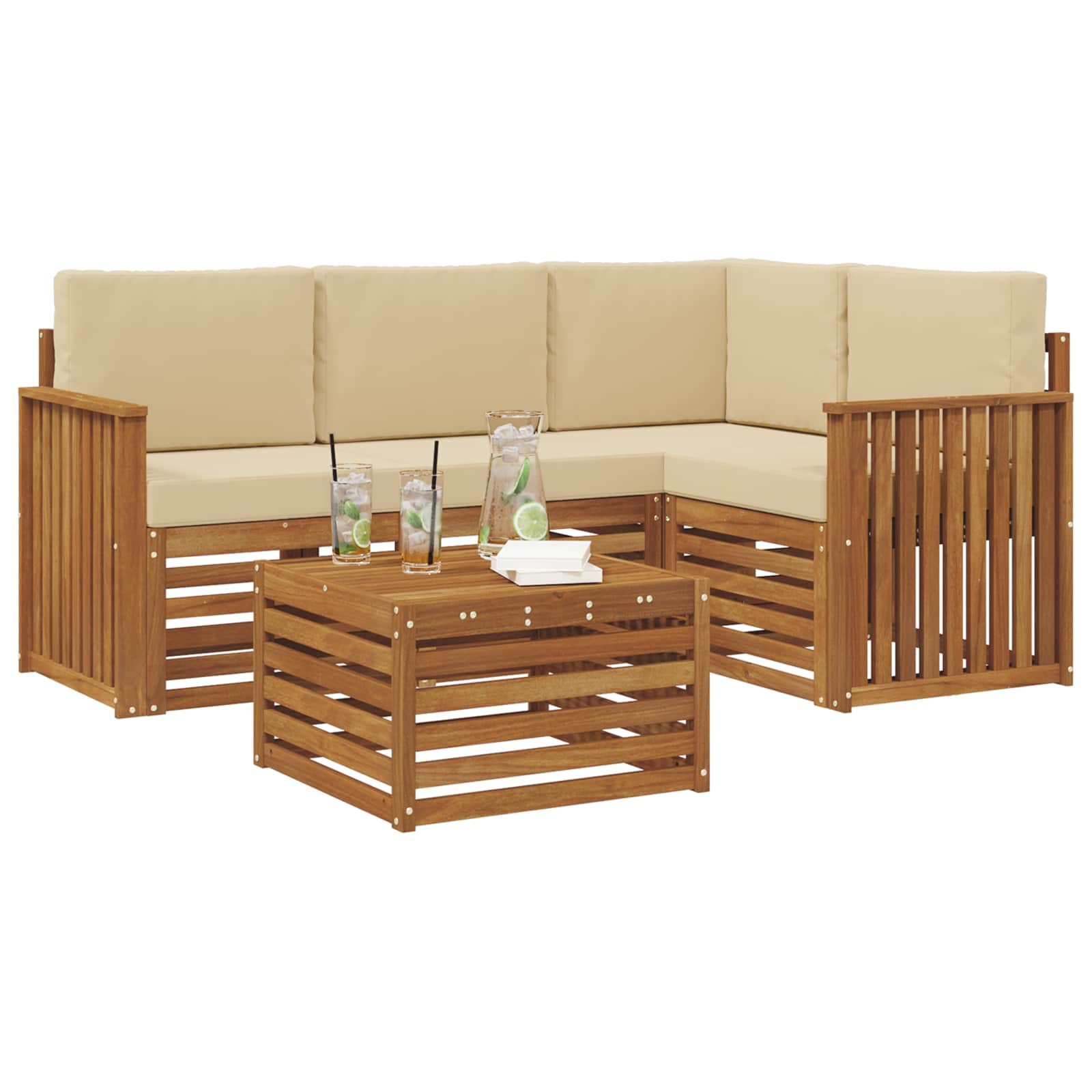 Dieses Outdoor-Sofa-Set vereint stylisches Design und praktische Funktionen und macht jeden Garten, jede Terrasse, jeden Poolbereich oder Hinterhof zum Schauplatz. Hergestellt aus massivem Akazienholz in einem warmen Braunton, strahlt es pure Gemütlichkeit aus. Das modulare Design fördert Kreativität und ermöglicht dir, die Sitzanordnungen easy für verschiedene Events umzugestalten – von gemütlichen Treffen bis hin zu großen Feiern. Material: Das massives Akazienholz sorgt für eine starke und langlebige Sitzlösung für Gartenpartys, Pool-Lounges oder Grillabende im Hinterhof. bekannt für seine tolle Textur und Widerstandsfähigkeit verbindet Akazienholz stylisches Design mit Langlebigkeit und ist perfekt für den Außenbereich. Modulare Konfiguration: Dieses Sofa lässt sich mit verschiedenen Modulen anpassen, um deinem Raum und deinen Vorlieben gerecht zu werden. Egal, ob du die Sofas für lange Gespräche anordnest oder gemütliche Ecken schaffst, die flexible Anordnung steigert die Nutzbarkeit und fördert kreative Ideen. Stylische Armlehnen: Jedes Stück hat Armlehnen aus Akazienholz, die den modernen Look unterstützen und für bequemen Sitz bieten. Ob du ein Buch liest oder plauderst, diese Armlehnen bringen dich zur Entspannung. Designmerkmale: Die modernen, geschlitzten Oberflächen machen das Möbelset echt attraktiv. Das schlichte Design passt super zu bestehenden Außenmöbeln und sorgt für die notwendige Luftzirkulation, was besonders an warmen Tagen toll ist. Pflegehinweise: Halte den coolen Look, indem du das Set einfach mit einem feuchten Tuch abwischst. So bleibt es nicht nur stylisch, sondern auch eine leichte Ergänzung für deinen Außenbereich.
