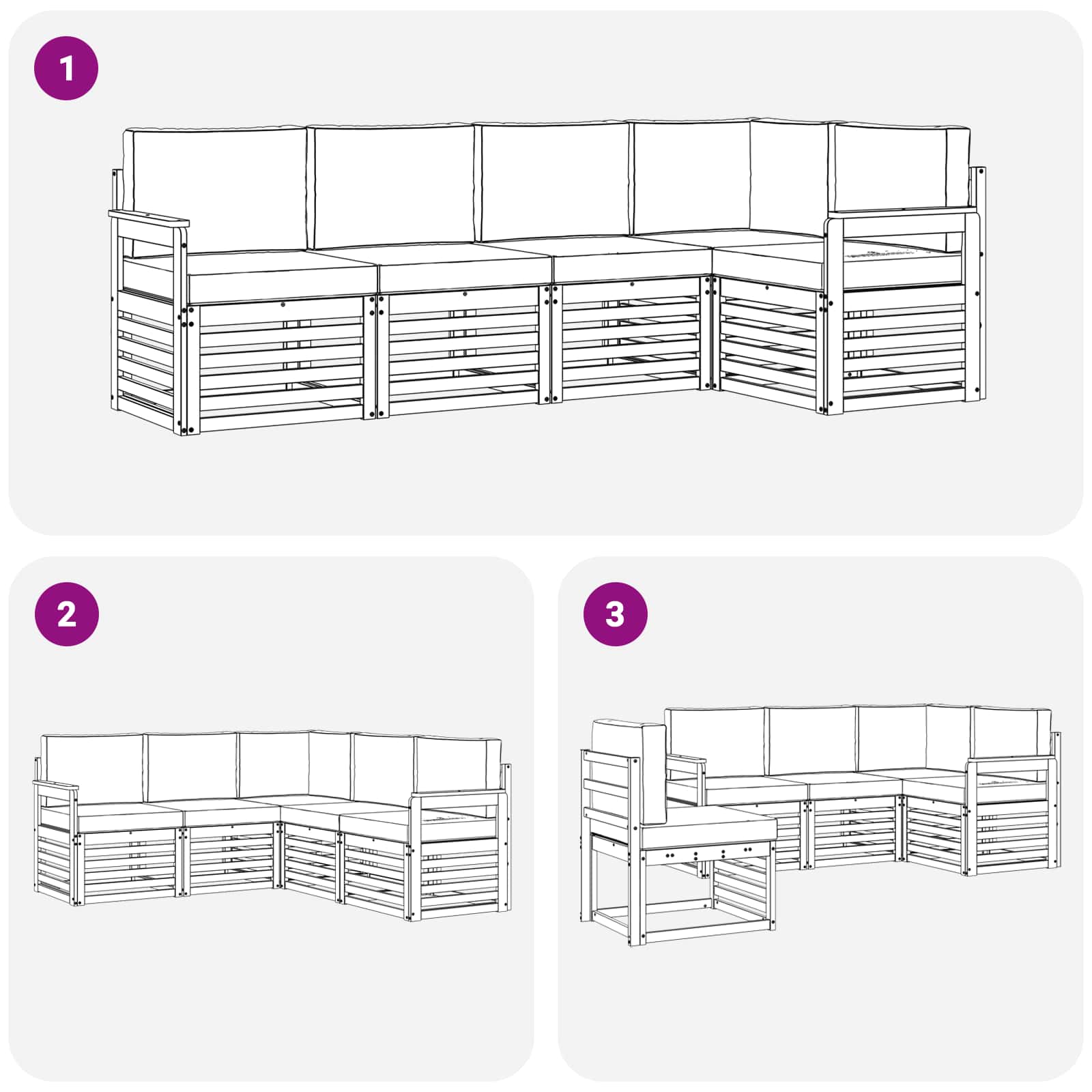 Das Outdoor-Möbel-Set bringt Stil und Funktionalität zusammen und wird zum Blickfang in jedem Garten oder auf jeder Terrasse. Mit seinem modernen Design und den klaren Linien sorgt es für Eleganz und lädt gleichzeitig zum Entspannen und Feiern im Freien ein. Hergestellt aus massivem Akazienholz, bietet das Set nicht nur Haltbarkeit, sondern auch eine langanhaltende Anziehungskraft und ist perfekt für alle, die praktische, schicke Gartenmöbel suchen. Robustes Massivholz Akazie: Das Set aus massivem Akazienholz ist für seine Langlebigkeit bekannt und widersteht den Witterungsbedingungen. Die stabile Bauweise sorgt für langanhaltenden Komfort, während die warme Holzfarbe jedem Außenbereich einen schönen Akzent verleiht. Wetterfestes Design: Die lackierte Oberfläche schützt das Set vor Sonne, leichten Regen und anderen äußeren Einflüssen. Dies hilft, die Optik und Funktionalität langfristig zu erhalten und sorgt für Haltbarkeit in deinem Garten, auf der Terrasse oder im Hinterhof. Stilvolles Design: Jedes Element, von den Armlehnen bis zu den Rückenlehnen, ist sowohl hübsch als auch praktisch gestaltet. Zusätzlicher Komfort durch unterstützende Features und ein harmonisches Design schaffen ein beeindruckendes Gesamtbild für jede Outdoor-Party. Komfort & Flexibilität: Das modulare Design ermöglicht dir verschiedene Konfigurationen, die zu deinem Raum und Bedarf passen. Ob für gemütliche Momente, gesellige Runden oder zum Lesen, das Set fügt sich sanft in jede Umgebung ein und maximiert den Komfort. Einfache Pflege: Halte die Möbel im Top-Zustand, indem du sie mit einem feuchten Tuch abwischst und aggressive Reinigungsmittel vermeidest. Regelmäßige Pflege hilft, das Aussehen zu bewahren und die Lebensdauer der Möbel zu verlängern.