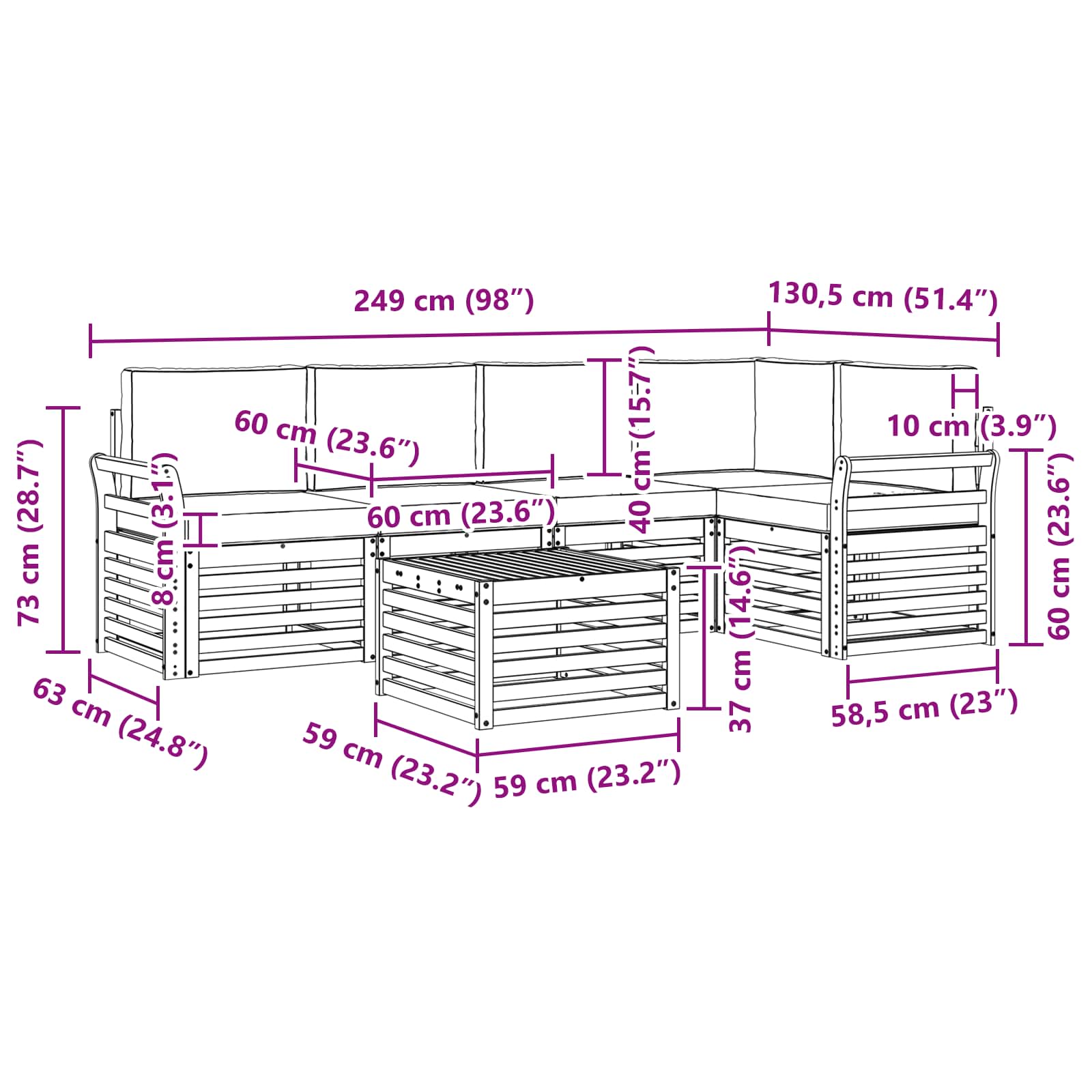 - 5 x Sitzkissen: 60 x 60 x 8 cm (LxBxH)