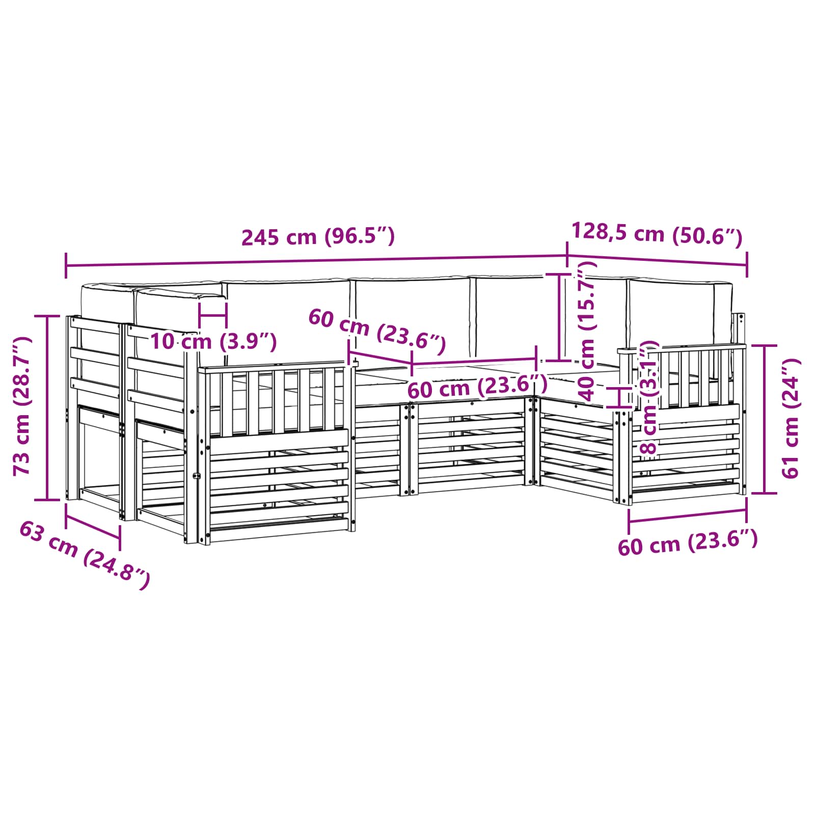 - 6 x Sitzkissen: 60 x 60 x 8 cm (LxBxH)