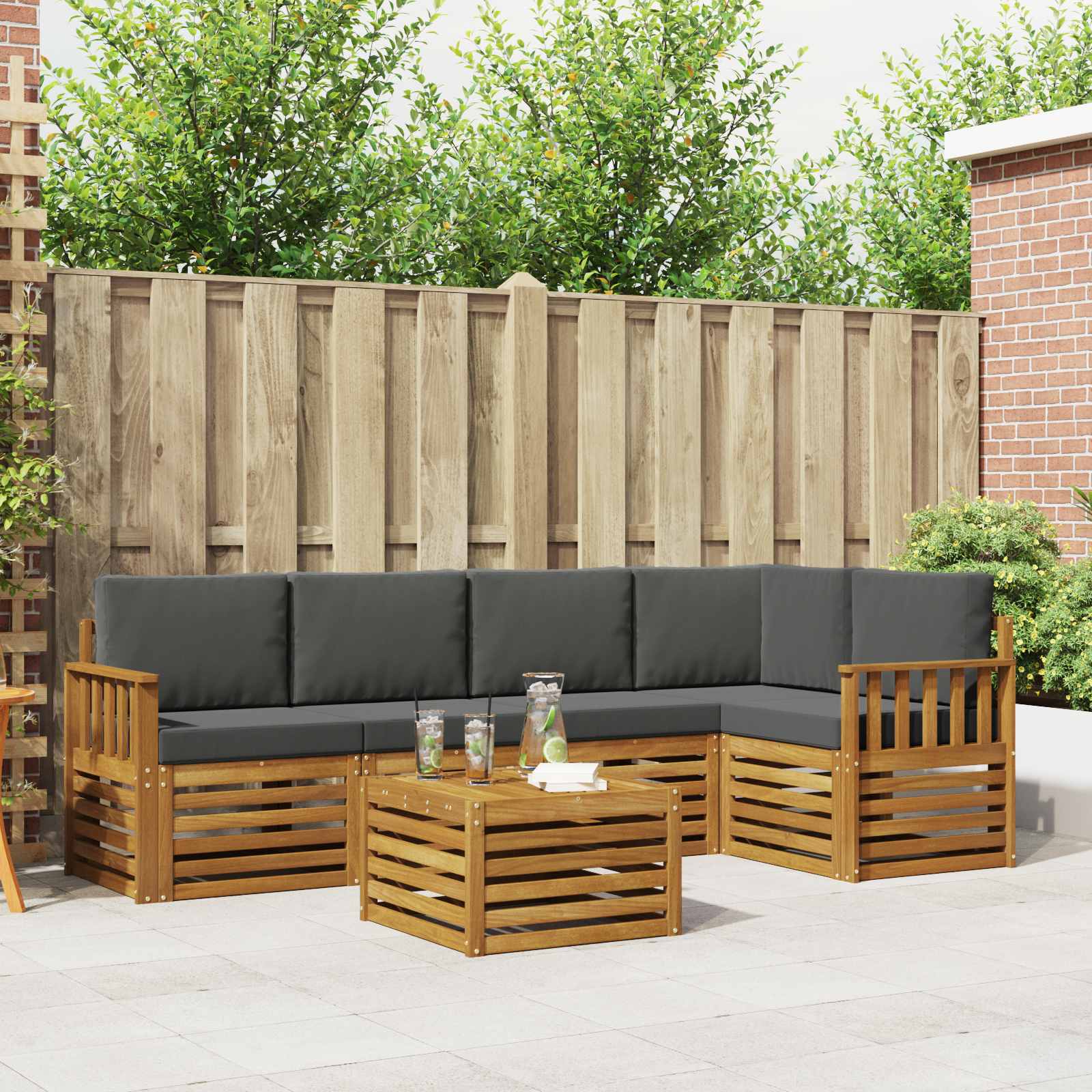 Das Outdoor-Möbelset verbindet Style mit Funktionalität und wird zum echten Blickfang in jedem Garten oder auf jeder Terrasse. Das moderne Design mit klaren Linien bringt Eleganz und sorgt für gemütliche Stunden im Freien. Hergestellt aus massivem Akazienholz bietet es Langlebigkeit und ein schickes Aussehen – perfekt für alle, die praktische und schicke Möbel suchen. Langlebiges massivem Akazienholz: Dieses Outdoor-Möbelset ist aus massivem Akazienholz gemacht und bekannt für seine Robustheit und Widerstandsfähigkeit gegen Witterungsbedingungen. Der stabile Rahmen sorgt für zuverlässige Unterstützung und hält lange, während die warme Holzfarbe jede Garten- oder Terrassengestaltung aufwertet. Wetterfestes Design: Das Set hat eine lackierte Oberfläche, die zusätzlichen Schutz gegen Sonne, leichten Regen und andere Witterungen bietet. Das polierte Finish bewahrt das Aussehen und die Funktionalität, sodass die Möbel lange in deinem Garten, auf der Terrasse oder im Hinterhof schön bleiben. Komponenten & Design: Jedes Stück ist so gestaltet, dass es sowohl stylish als auch funktional ist. Die unterstützenden Merkmale sorgen für zusätzlichen Komfort, und das harmonische Design lässt das Set auf verschiedenen Outdoor-Events gut aussehen. Komfort & Vielseitigkeit: Das modulare Design ermöglicht flexible Konfigurationen, die an verschiedene Räume und Bedürfnisse angepasst werden können. Ideal zum Chillen, für gesellige Treffen oder ruhige Lesestunden – dieses Set passt sich jeder Outdoor-Umgebung an und maximiert den Komfort. Einfache Pflege: Halte deine Möbel in gutem Zustand, indem du die Oberfläche mit einem feuchten Tuch abwischst und aggressive Reinigungsmittel vermeidest. Regelmäßige Pflege erhält das coole Aussehen und verlängert die Lebensdauer deiner Möbel.