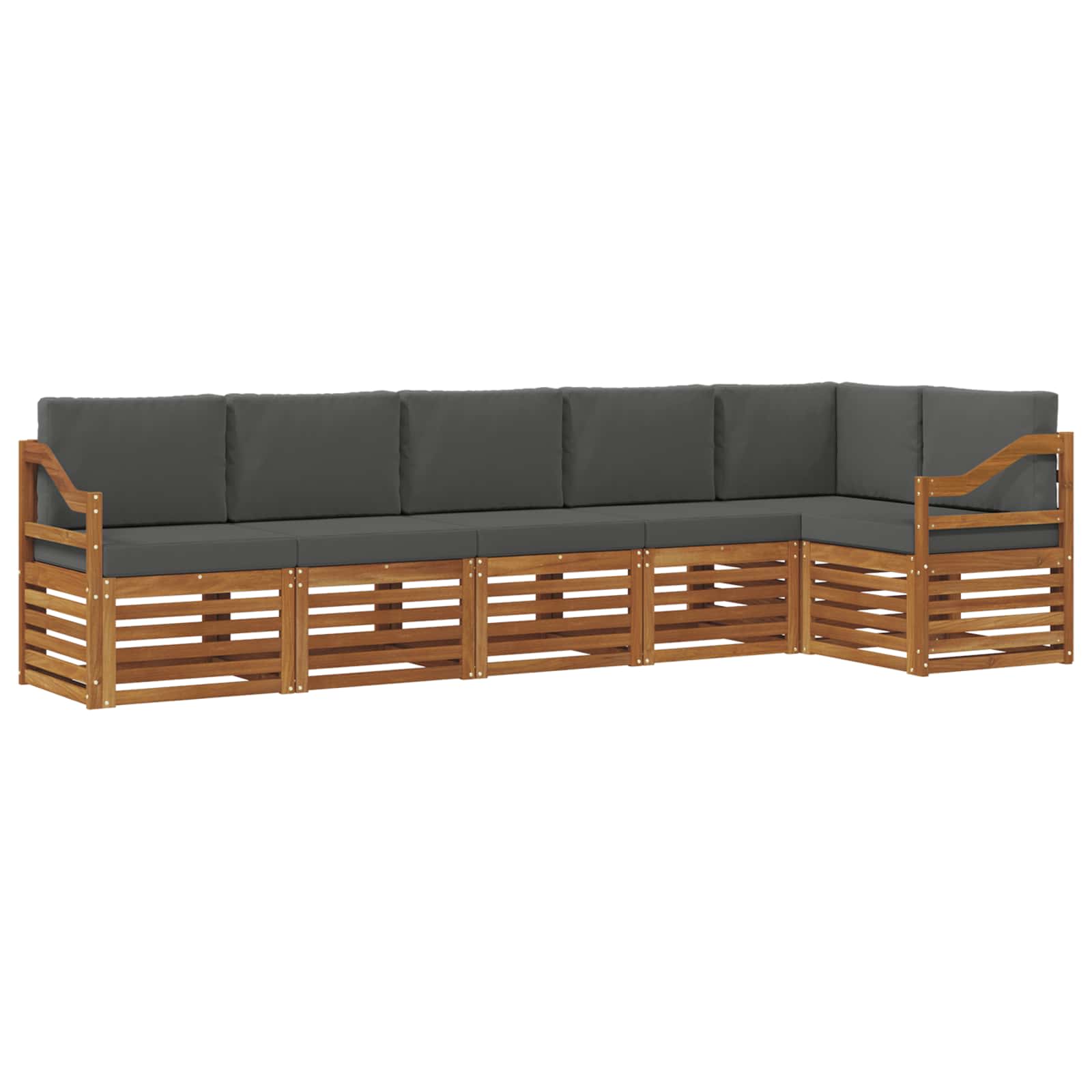Dieses Möbelset für draußen kombiniert coolen Style mit praktischen Features und setzt ein stylisches Highlight in jedem Garten oder auf jeder Terrasse. Mit ihrem modernen Design, einfachen Linien und minimalen Details sorgt es für Eleganz und perfekte Voraussetzungen, um im Freien zu entspannen oder gesellige Runden zu genießen. Ganz aus massivem Akazienholz gefertigt, bietet das Set Langlebigkeit und sieht über die Zeit immer gut aus - die ideale Wahl für alle, die Design und Funktionalität schätzen. Langlebiges Massivholz Akazie: Das Außenmöbelset ist aus robustem Akazienholz gefertigt, das super haltbar ist und sich gut an die Wetterbedingungen anpasst. Die robuste Bauweise sorgt für Stabilität und Langlebigkeit, während die warme Farbe jede Garten- oder Terrassengestaltung aufpeppt. Wetterbeständiges Design: Die lackierte Oberfläche des Sets bietet zusätzlichen Schutz vor Sonne, leichtem Regen und anderen Witterungen. Die polierte Oberfläche hilft, die Optik und Funktionalität langfristig zu bewahren und sorgt dafür, dass die Möbel in deinem Garten, auf der Terrasse oder im Hinterhof immer gut aussehen. Komponenten und Design: Jedes Teil, von den Armlehnen bis zu den Rückenlehnen, wurde sowohl stilvoll als auch funktional gestaltet. Die unterstützenden Elemente tragen zusätzlich zum Komfort bei, während das einheitliche Design ein harmonisches Gesamtbild für verschiedene Outdoor-Anlässe schafft. Komfort und Vielseitigkeit: Das modulare Design ermöglicht flexible Anordnungen, die für verschiedene Räume und Bedürfnisse passen. Egal, ob du entspannst, Gäste einlädst oder ruhig lesen möchtest - dieses Set fügt sich mühelos in jede Außenumgebung ein und sorgt für maximalen Komfort und Nutzung. Einfache Pflege: So bleiben die Möbel schön: einfach mit einem feuchten Tuch abwischen und aggressive Reiniger vermeiden. Regelmäßige Pflege hält die Möbel top und verlängert ihre Lebensdauer.