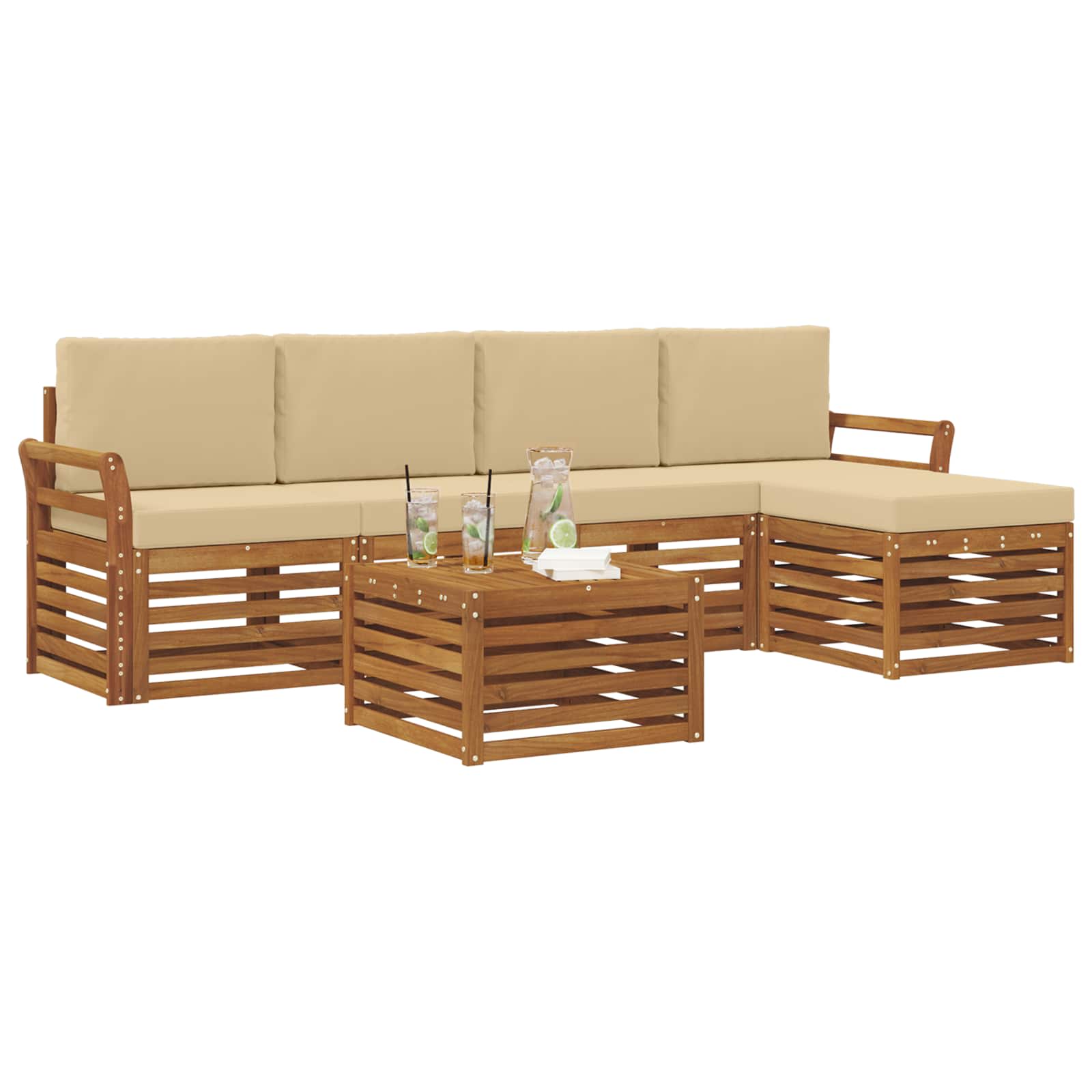 Das Außenset verbindet Stil und Funktionalität zu einem echten Blickfang für jeden Garten oder jede Terrasse. Das moderne Design mit klaren Linien und minimalistischen Details sorgt für Eleganz und unterstützt zugleich entspannte Momente im Freien. Komplett aus solidem Akazienholz gefertigt, bietet das Set nicht nur Langlebigkeit, sondern auch dauerhaften visuellen Reiz – die ideale Wahl für alle, die praktisches und elegantes Outdoor-Design suchen. Langlebiges Massivholz Akazie: Das Set aus solidem Akazienholz ist bekannt für seine Robustheit und Widerstandsfähigkeit gegenüber Wettereinflüssen. Die stabile Bauweise sorgt für zuverlässigen Halt und Langzeit-Stabilität. Der warme Farbton wertet jeden Garten oder jede Terrasse auf. Wetterbeständiges Design: Dank der lackierten Oberfläche ist das Set geschützt gegen Sonne, leichten Regen und andere Witterungseinflüsse. Die glatte Oberfläche hilft, das Aussehen und die Funktionalität zu bewahren und gewährleistet die Haltbarkeit für deinen Garten, deine Terrasse oder deinen Hinterhof. Komponenten & Design: Jedes Element – von den Armlehnen bis zu den Rückenlehnen – ist durchdacht sowohl für Stil als auch für Komfort designt. Unterstützende Details sorgen für mehr Bequemlichkeit, während das einheitliche Design ein harmonisches Gesamtbild für verschiedene Outdoor-Events schafft. Komfort & Flexibilität: Das modulare Design erlaubt es, die Konfiguration flexibel nach deinen Wünschen anzupassen. Egal ob relaxen, gesellig beisammensein oder in Ruhe lesen – dieses Set fügt sich mühelos in jede Außenumgebung ein und maximiert den Komfort und die Nutzbarkeit. Einfache Pflege & Wartung: Damit die Möbel lange schön bleiben, reicht es, die Oberfläche mit einem feuchten Tuch abzuwischen und aggressive Reiniger zu vermeiden. Regelmäßige Pflege hilft, das Aussehen zu bewahren und die Lebensdauer des Sets zu verlängern.